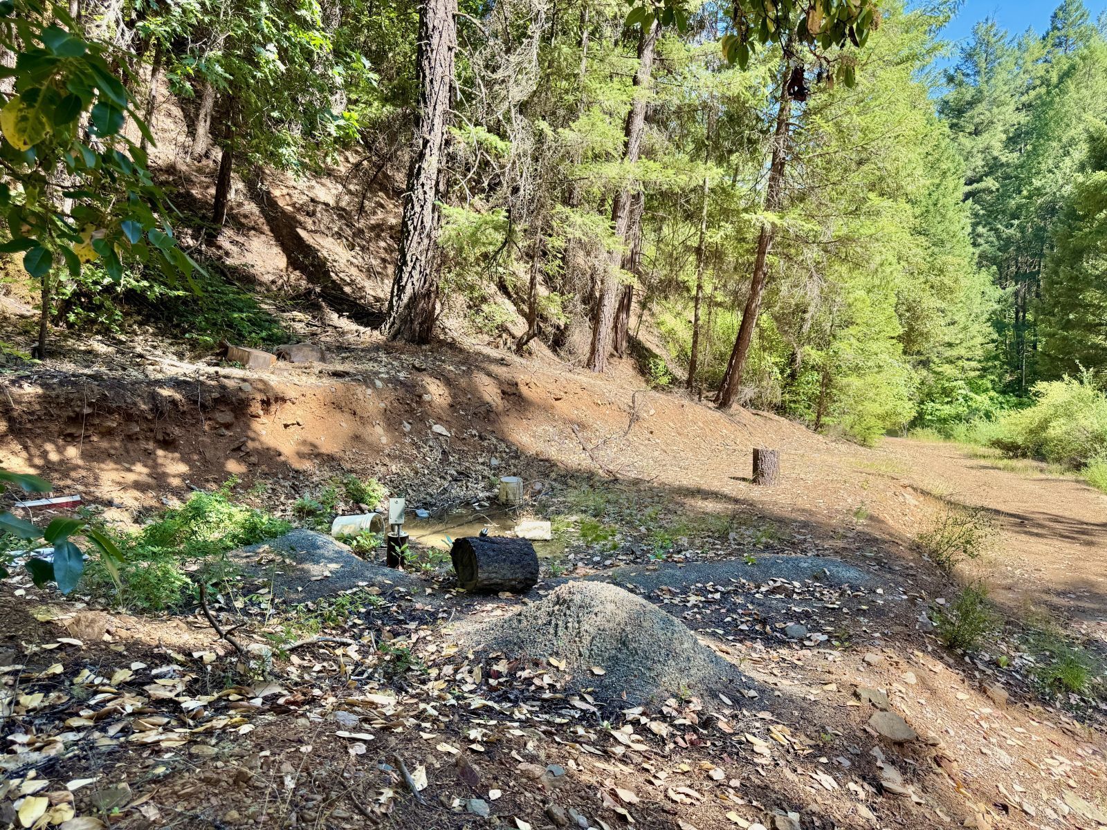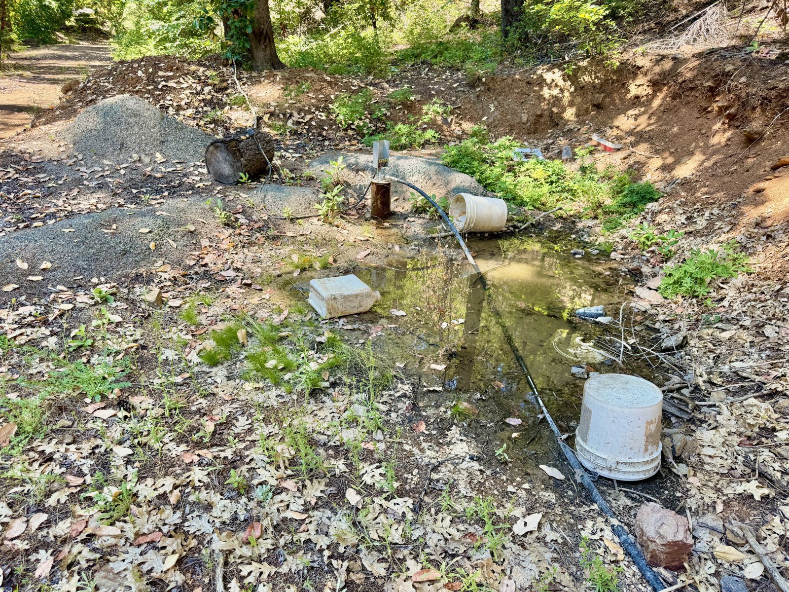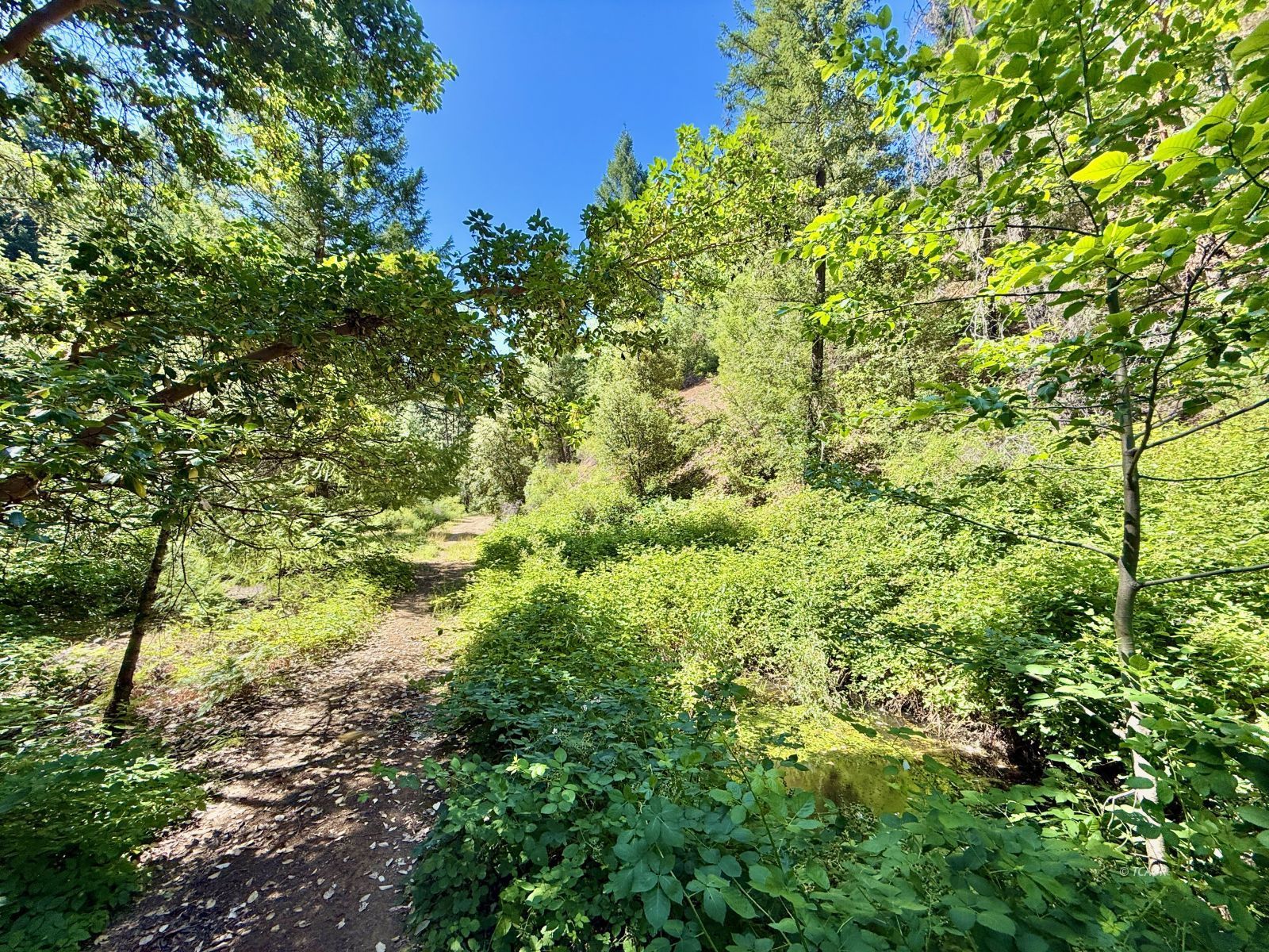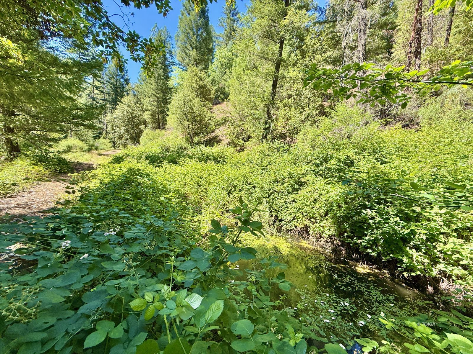 Water worries are a thing of the past with this 9.98ac property that is quite literally overflowing with water from several sources. There was a recently drilled well that sits overflowing at a continuous rate without the aid of power. The well has formed a pool at the base of the casing indicating it's a really good one! Additionally, there's a small creek that crosses the property with a road carved along it's borders for easy access. Up against the hill and obscured by berries, there is also a spring-fed pond that sits unused but ready to be an emergency bulk water source or fire retardant. The land is accessed via W Weaver Rd but bears a Democrat Heights road name. A winding but well maintained 4x4 road makes it's way up into the mountains and then gets a little more rough as it heads down to the creekside campsite. An abundance of nearly tamed wildlife, large deer and game trails cross the property all over. There's a driveway up into a garden area that's been enlarged and flattened. Roadway along the creek. This one is just a few mins outside of Weaverville, making it accessible and close to things like fuel, groceries, schools and even the hospital.