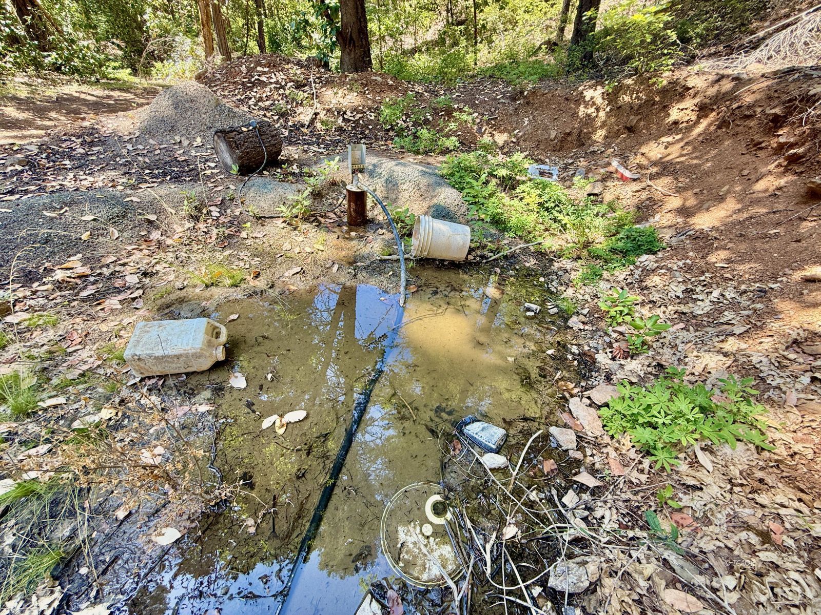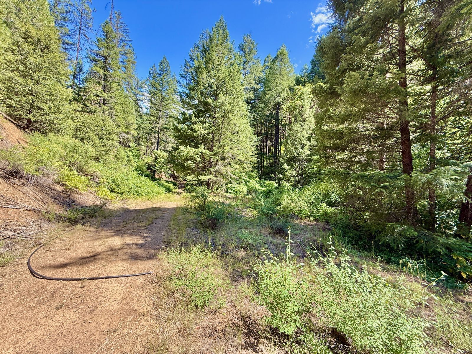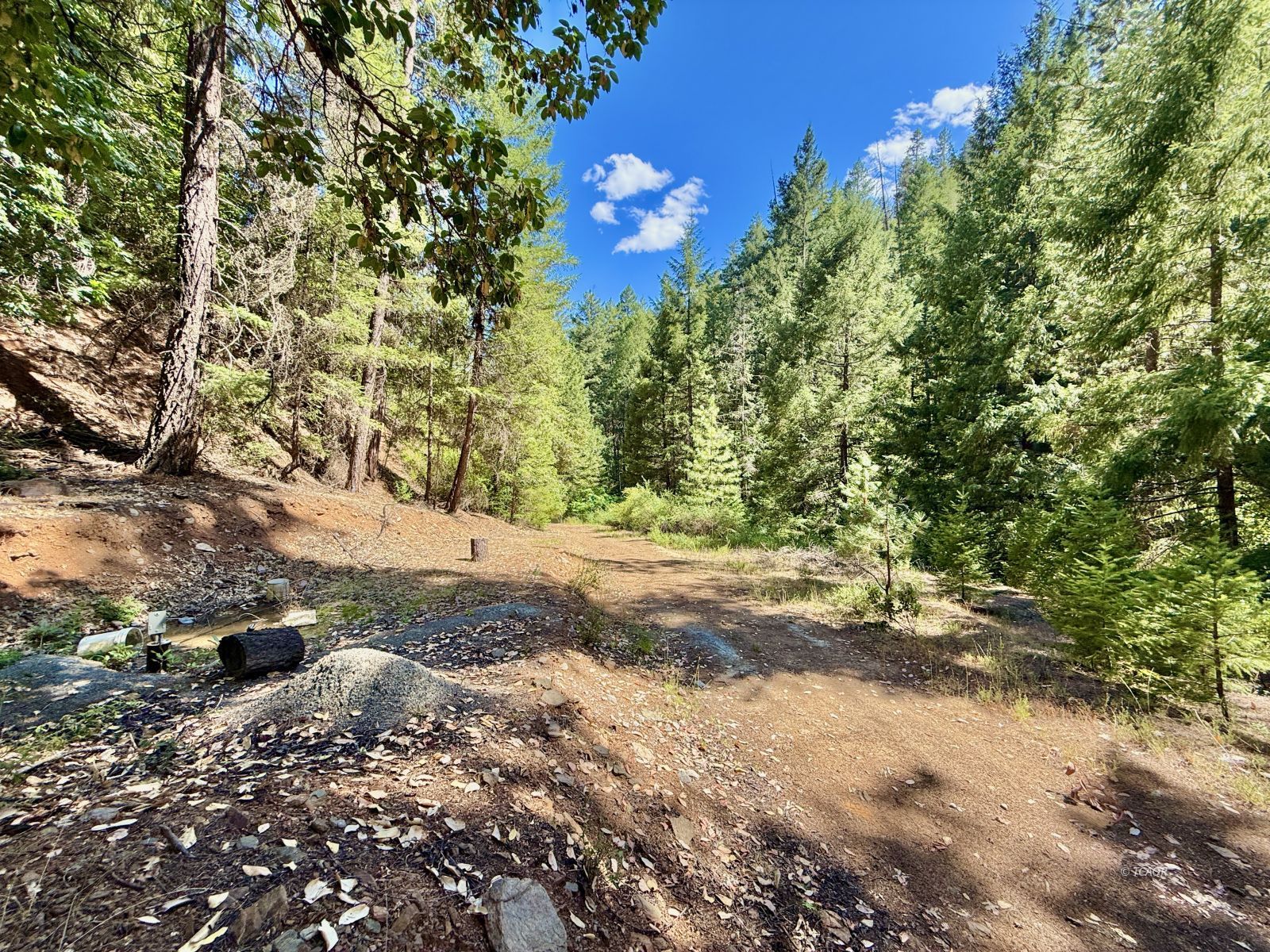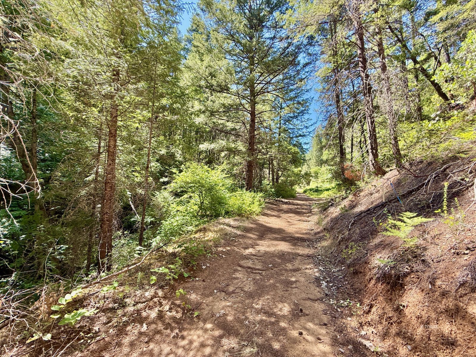 Water worries are a thing of the past with this 9.98ac property that is quite literally overflowing with water from several sources. There was a recently drilled well that sits overflowing at a continuous rate without the aid of power. The well has formed a pool at the base of the casing indicating it's a really good one! Additionally, there's a small creek that crosses the property with a road carved along it's borders for easy access. Up against the hill and obscured by berries, there is also a spring-fed pond that sits unused but ready to be an emergency bulk water source or fire retardant. The land is accessed via W Weaver Rd but bears a Democrat Heights road name. A winding but well maintained 4x4 road makes it's way up into the mountains and then gets a little more rough as it heads down to the creekside campsite. An abundance of nearly tamed wildlife, large deer and game trails cross the property all over. There's a driveway up into a garden area that's been enlarged and flattened. Roadway along the creek. This one is just a few mins outside of Weaverville, making it accessible and close to things like fuel, groceries, schools and even the hospital.