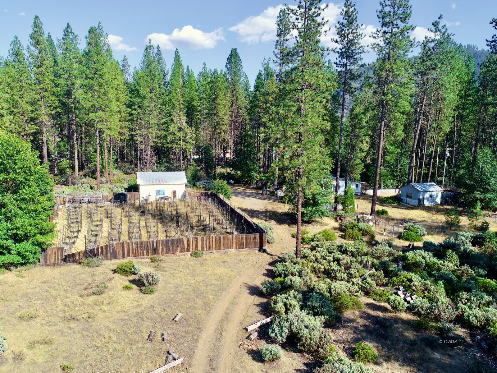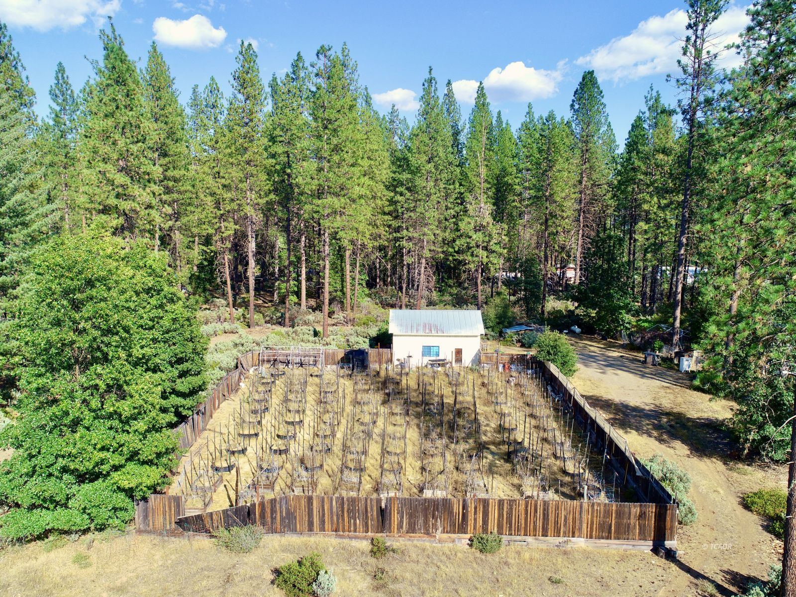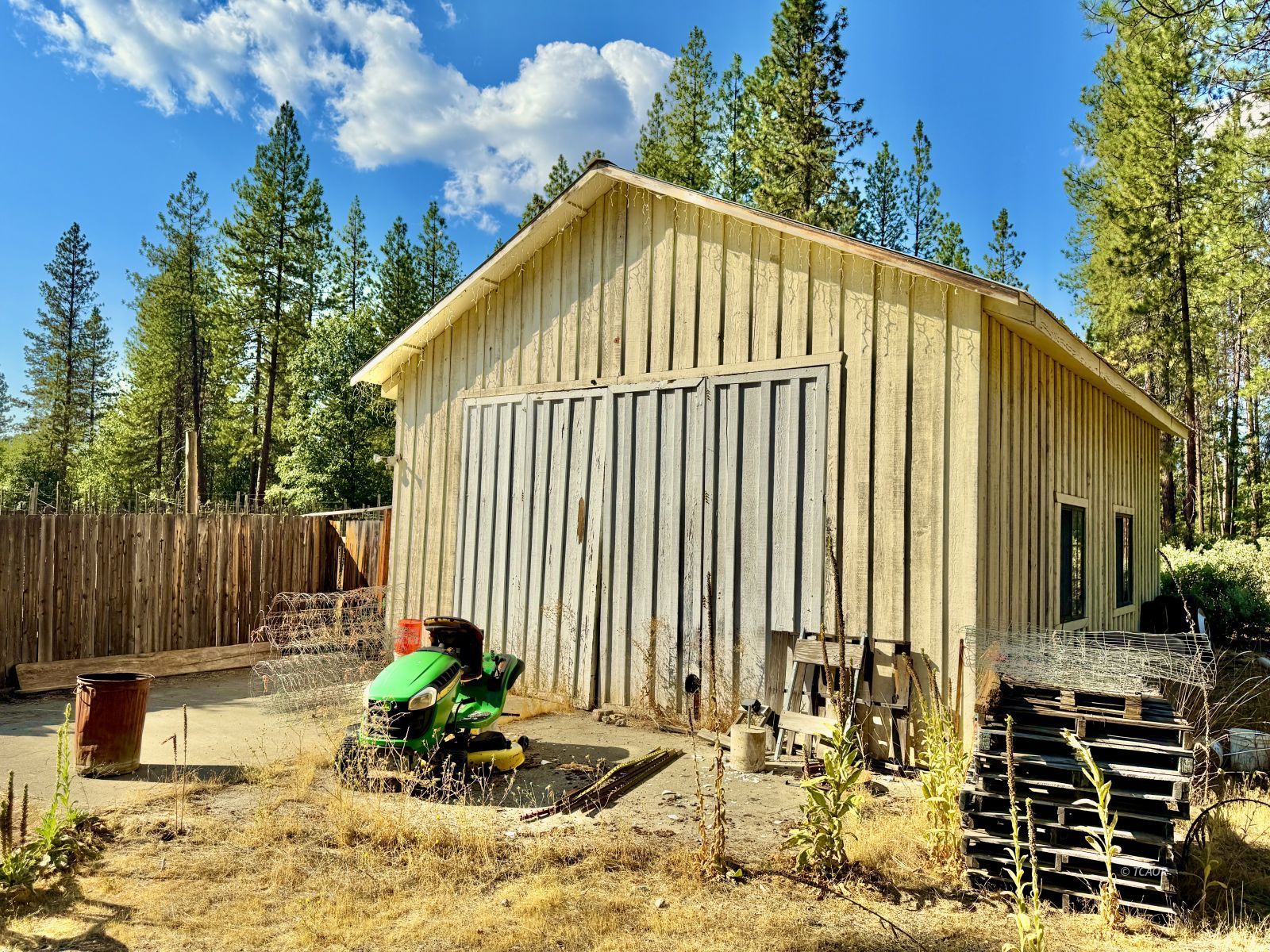 This little ranchette is in a quiet pocket of Hayfork, surrounded by irrigated cow pastures, and waiting for new homesteaders to operate it to it's full potential. The modular home is 3 BDs and 2 BAs and has nice appointments like bay/corner windows, large open living/dining room, a full chef's kitchen with gas appliances, and evaporative roof mounted AC. Generous sized outbuildings, both with power offer ample storage or could be converted to a workshop, craft studios, extra stay space, or might be big enough for use as a future ADU. One larger garage with bifolding doors and metal roof, perfect for working on any size equipment. An expansive and fully fenced garden area is built off the West side of the garage building with room to expand to acres in size. The property has both a private driveway and a back gated entrance that leads to a neighboring dirt road and out to the main road. Most of the 5ac is open, unused, old fencing criss-crosses the land. Fire Hydrant connection located at the Southwest corner of the property @ Big Creek Rd. Miles of National Forest begins just a couple miles up the road, Hayfork Creek nearby, Ewing Reservoir is also only about a mile away.