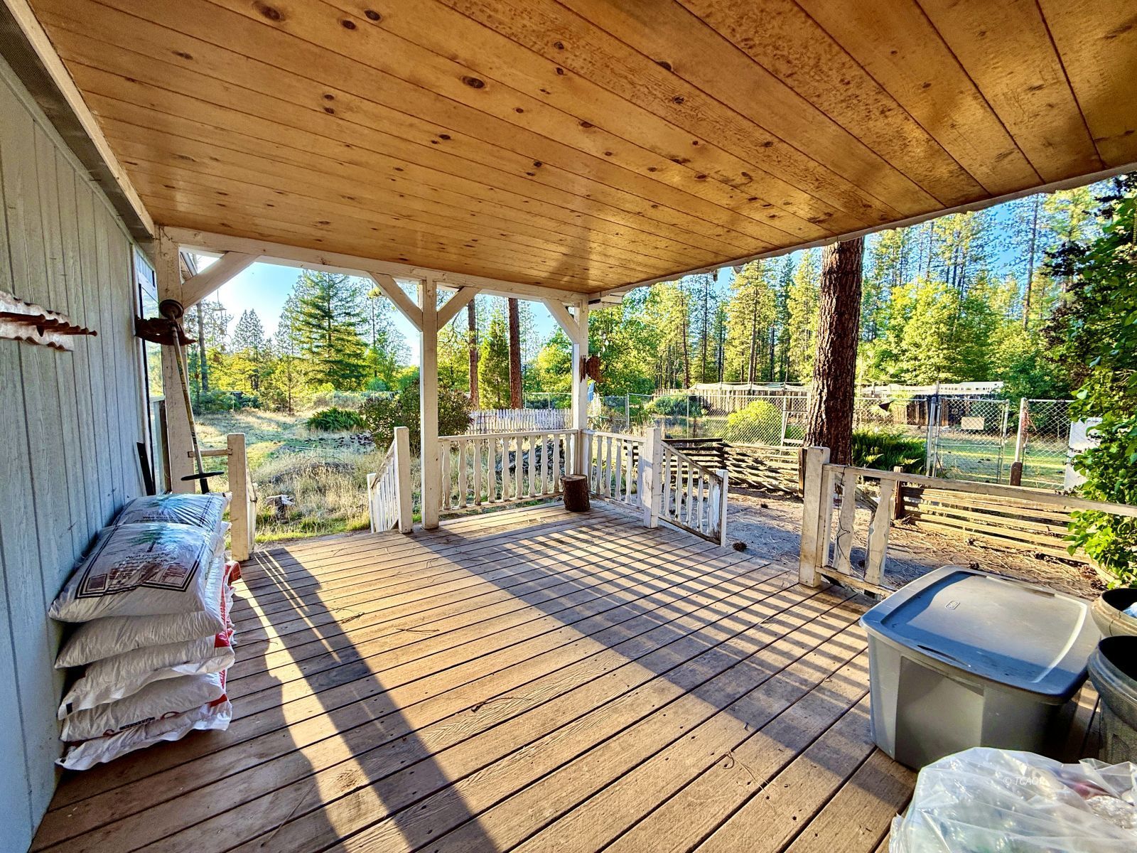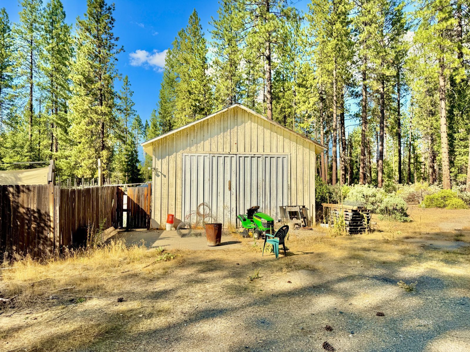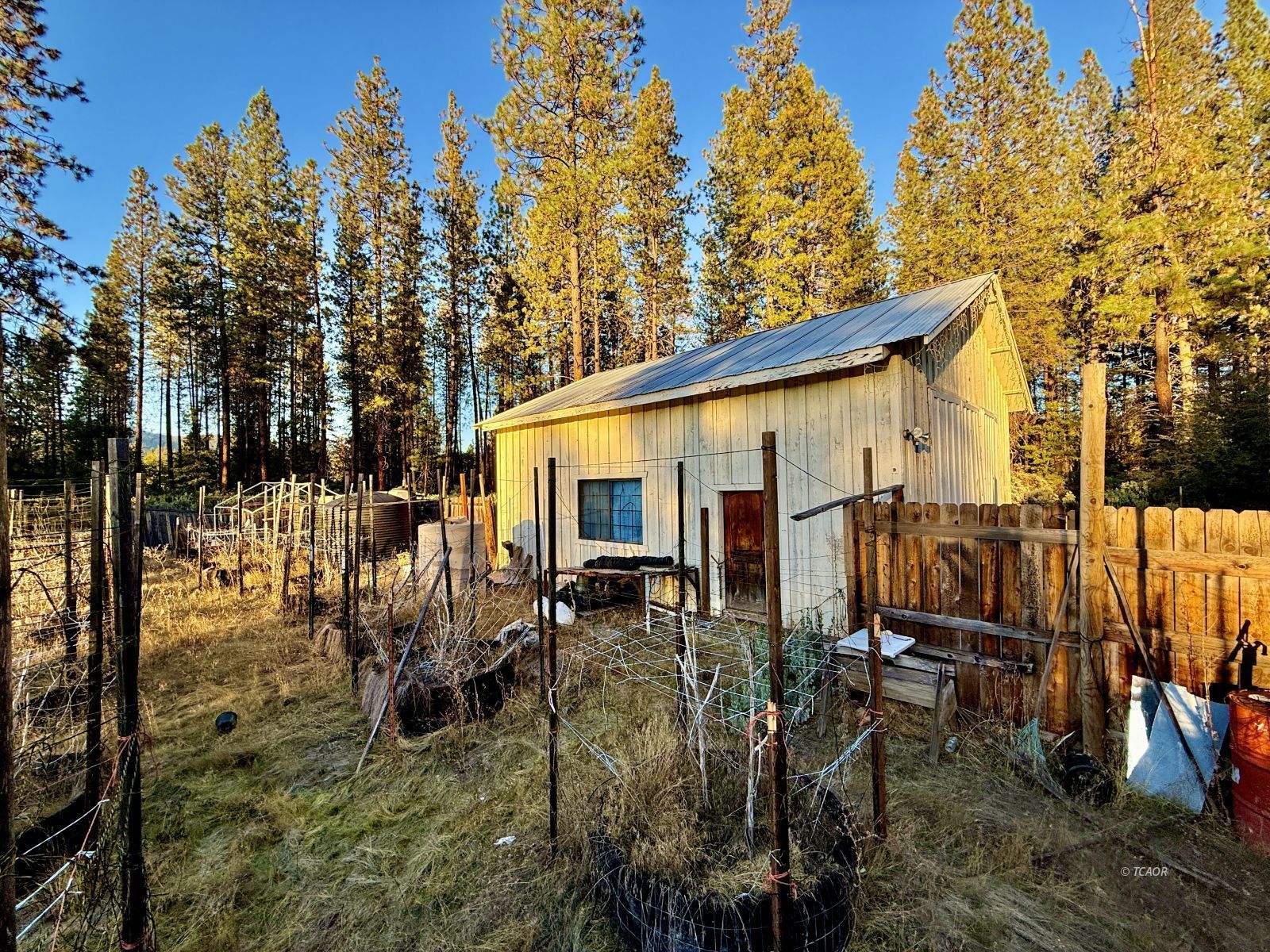 This little ranchette is in a quiet pocket of Hayfork, surrounded by irrigated cow pastures, and waiting for new homesteaders to operate it to it's full potential. The modular home is 3 BDs and 2 BAs and has nice appointments like bay/corner windows, large open living/dining room, a full chef's kitchen with gas appliances, and evaporative roof mounted AC. Generous sized outbuildings, both with power offer ample storage or could be converted to a workshop, craft studios, extra stay space, or might be big enough for use as a future ADU. One larger garage with bifolding doors and metal roof, perfect for working on any size equipment. An expansive and fully fenced garden area is built off the West side of the garage building with room to expand to acres in size. The property has both a private driveway and a back gated entrance that leads to a neighboring dirt road and out to the main road. Most of the 5ac is open, unused, old fencing criss-crosses the land. Fire Hydrant connection located at the Southwest corner of the property @ Big Creek Rd. Miles of National Forest begins just a couple miles up the road, Hayfork Creek nearby, Ewing Reservoir is also only about a mile away.