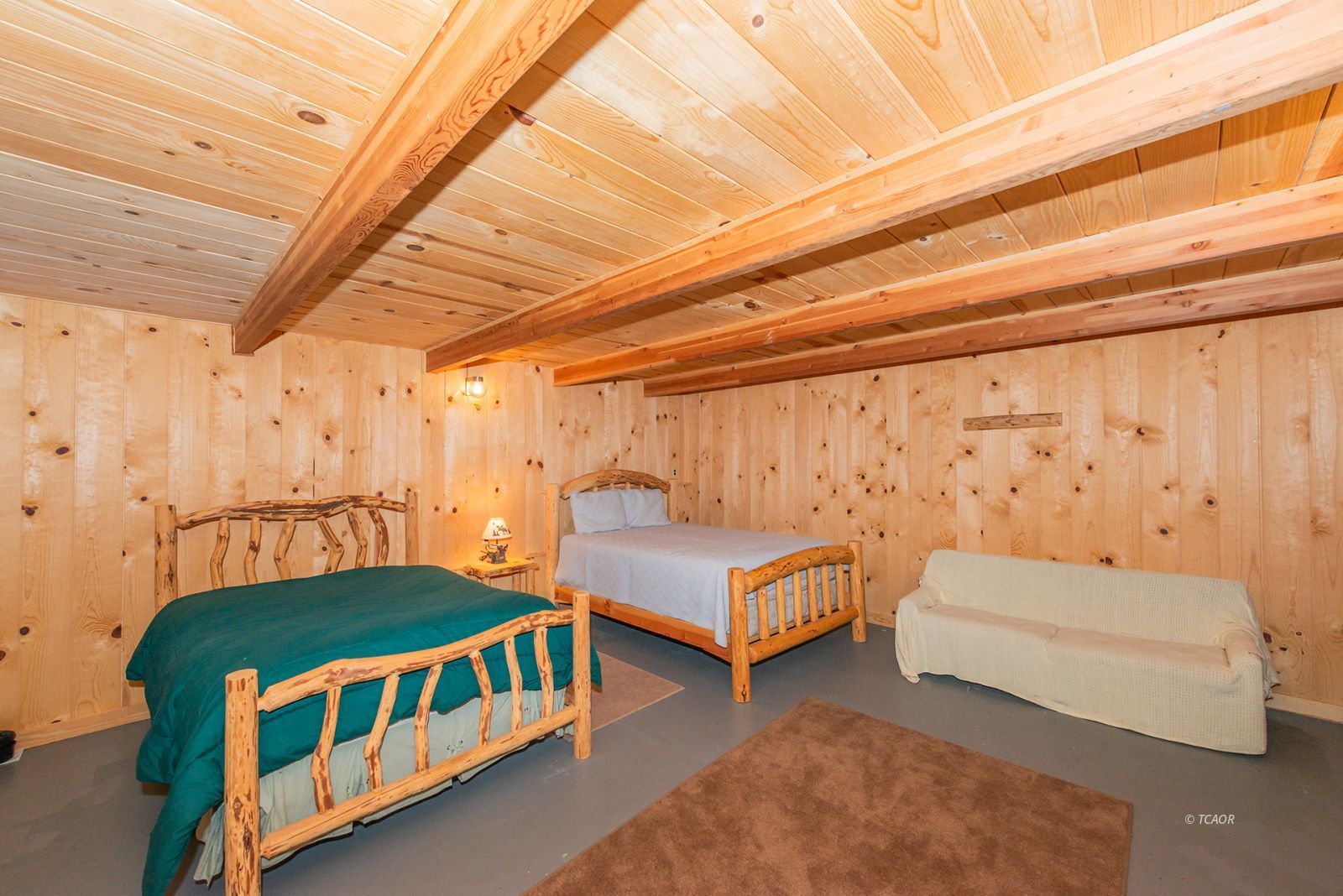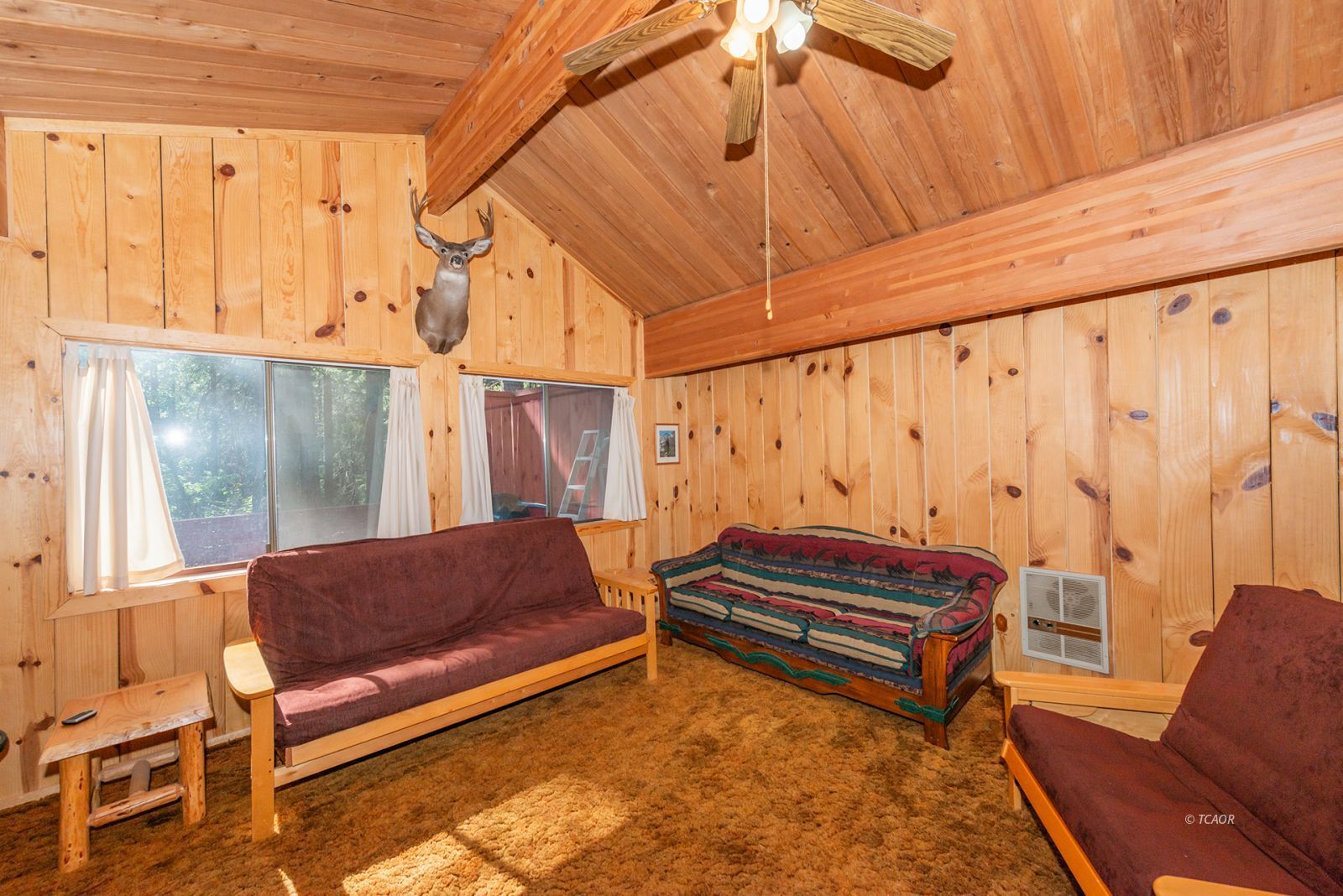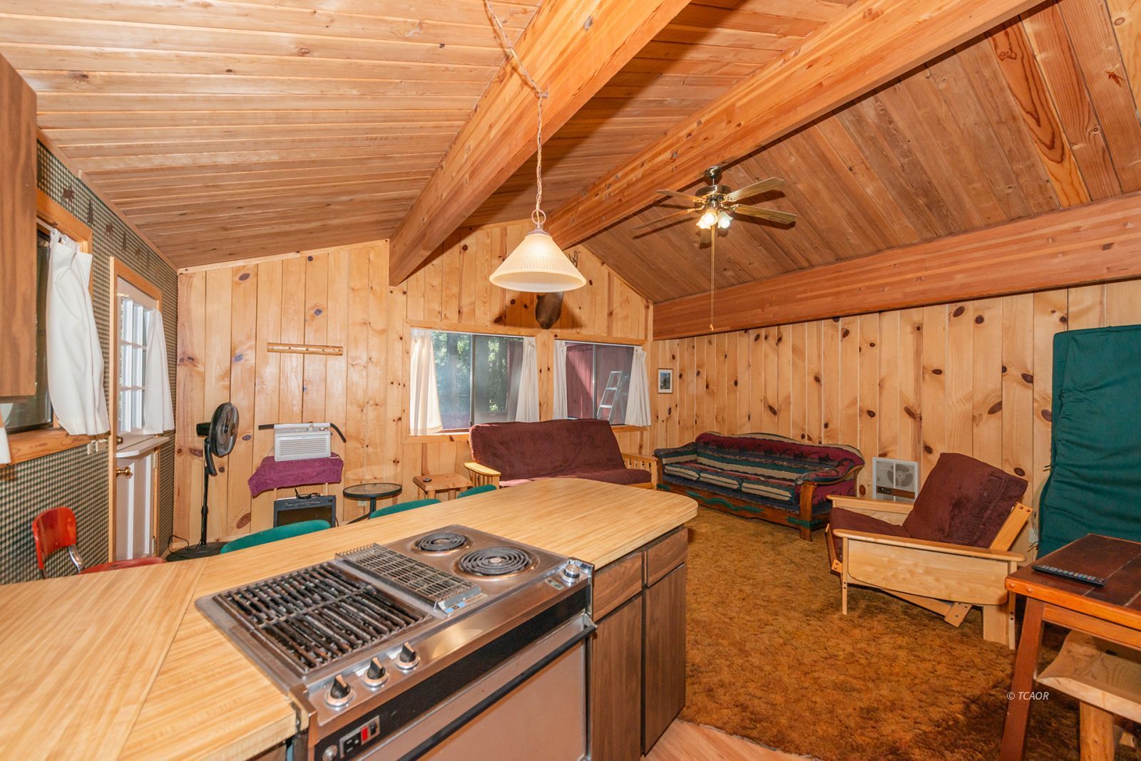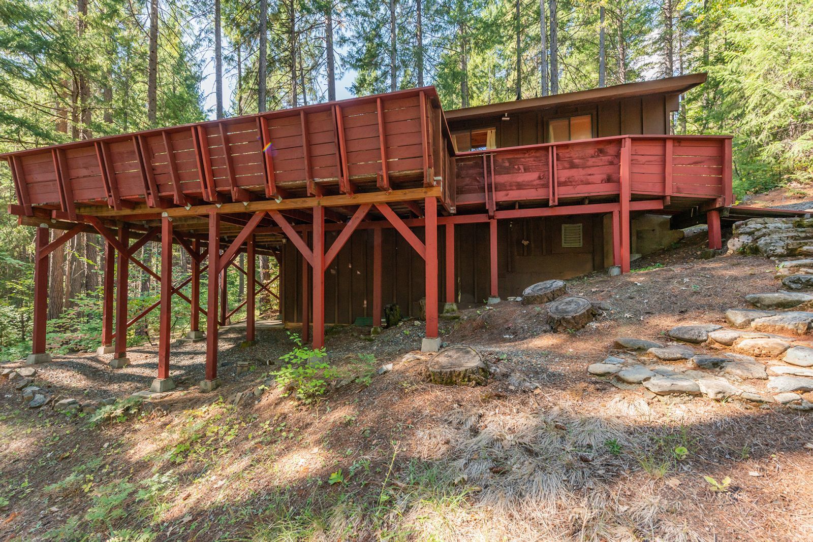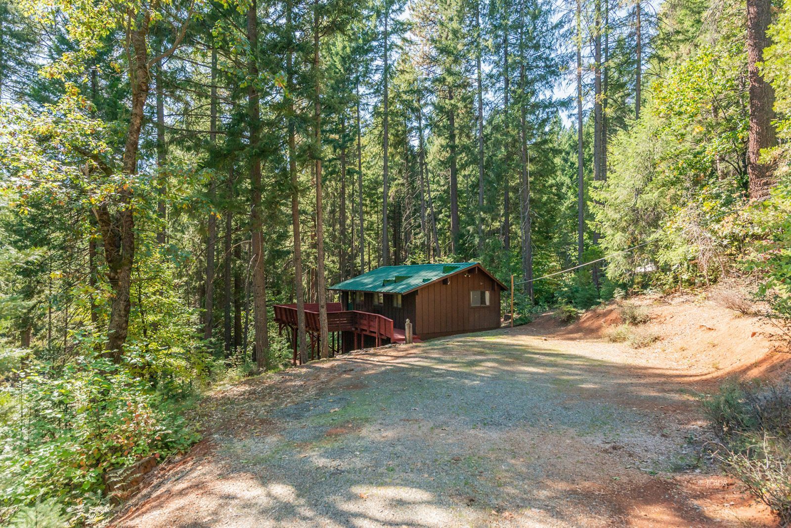 Nestled at the foot of the stunning Trinity Alps Wilderness, this charming 980 sq. ft. cabin captures the essence of mountain living and lakeside relaxation. Featuring beautiful T & G hemlock wood and vaulted ceilings, this inviting retreat offers a warm, rustic atmosphere throughout. The main level features a cozy one-bedroom, one-bath layout, with the kitchen conveniently centered in the heart of the home-perfect for easy gatherings, great natural light that enhances the cabin's serene charm. Downstairs, a walkout basement provides additional sleeping space with two large beds, ideal for guests or family getaways. Step outside to enjoy the expansive wraparound deck-perfect for relaxing, entertaining, or taking in the forested scenery. Built with quality in mind, the cabin features redwood board-and-batten siding, a durable metal roof, and ample decking. Sitting on .43 of an acre, there's plenty of room for boat or RV parking-and with Trinity Lake right across the street, your next adventure is always within reach! Whether you love boating, fishing, backpacking, hiking, or camping this property is your gateway to the great outdoors. Enjoy peace, privacy & endless recreation.