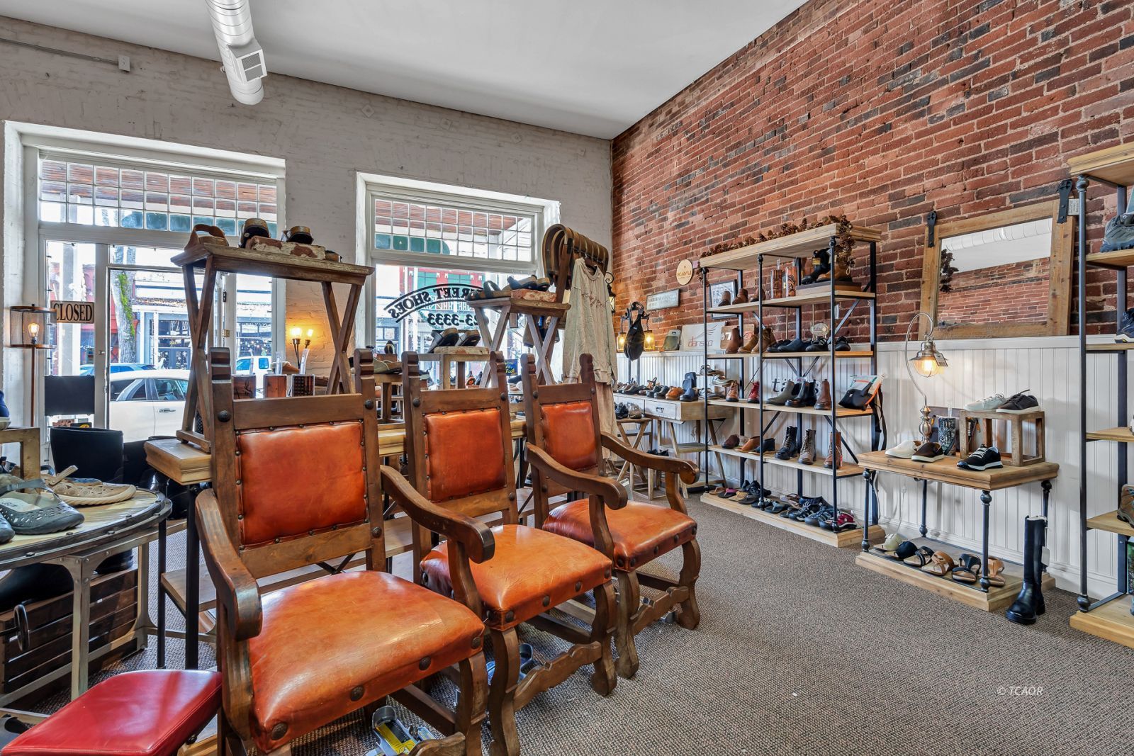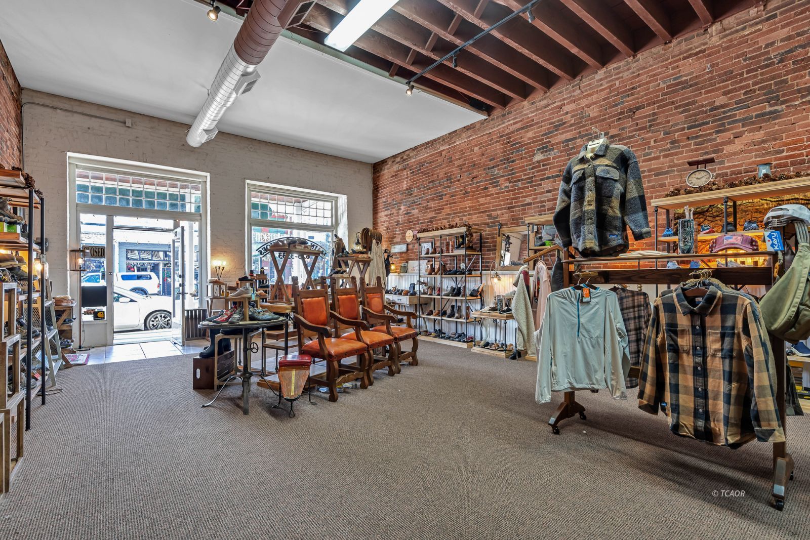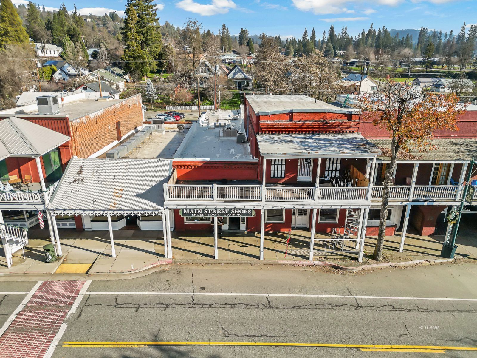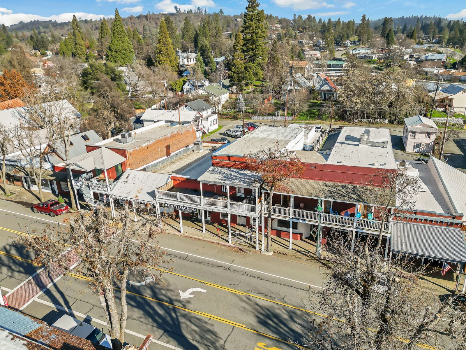 Situated on Main Street in the heart of historic Weaverville, this character-rich commercial building blends timeless appeal with exceptional visibility. Featuring Highway 299 frontage, the property benefits from steady pedestrian and vehicle traffic-an ideal setting for a boutique retail concept, gallery, studio, or specialty business. The 1,540 sq ft front showroom offers an elegant, light-filled environment with oversized picture windows, tile entry, exposed brick walls, and soaring fir ceilings. A dressing room and half bath enhance functionality, while the layout creates a refined and intimate shopping experience. Existing display fixtures may be negotiated separately. (Inventory not included.) The rear portion offers 1,100 sq ft and includes a tanning room, two large storage rooms, office area, extensive shelving, and a separate entrance. Shelving may be removed to maximize flexibility. With vision and updates, the property offers potential for a live/work conversion, allowing residence and business within one distinctive historic space. A rare opportunity to own a boutique-caliber property in one of Weaverville's most charming and established locations.