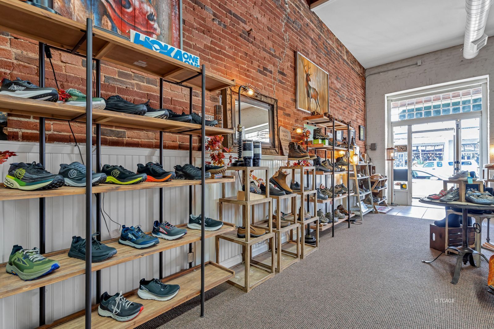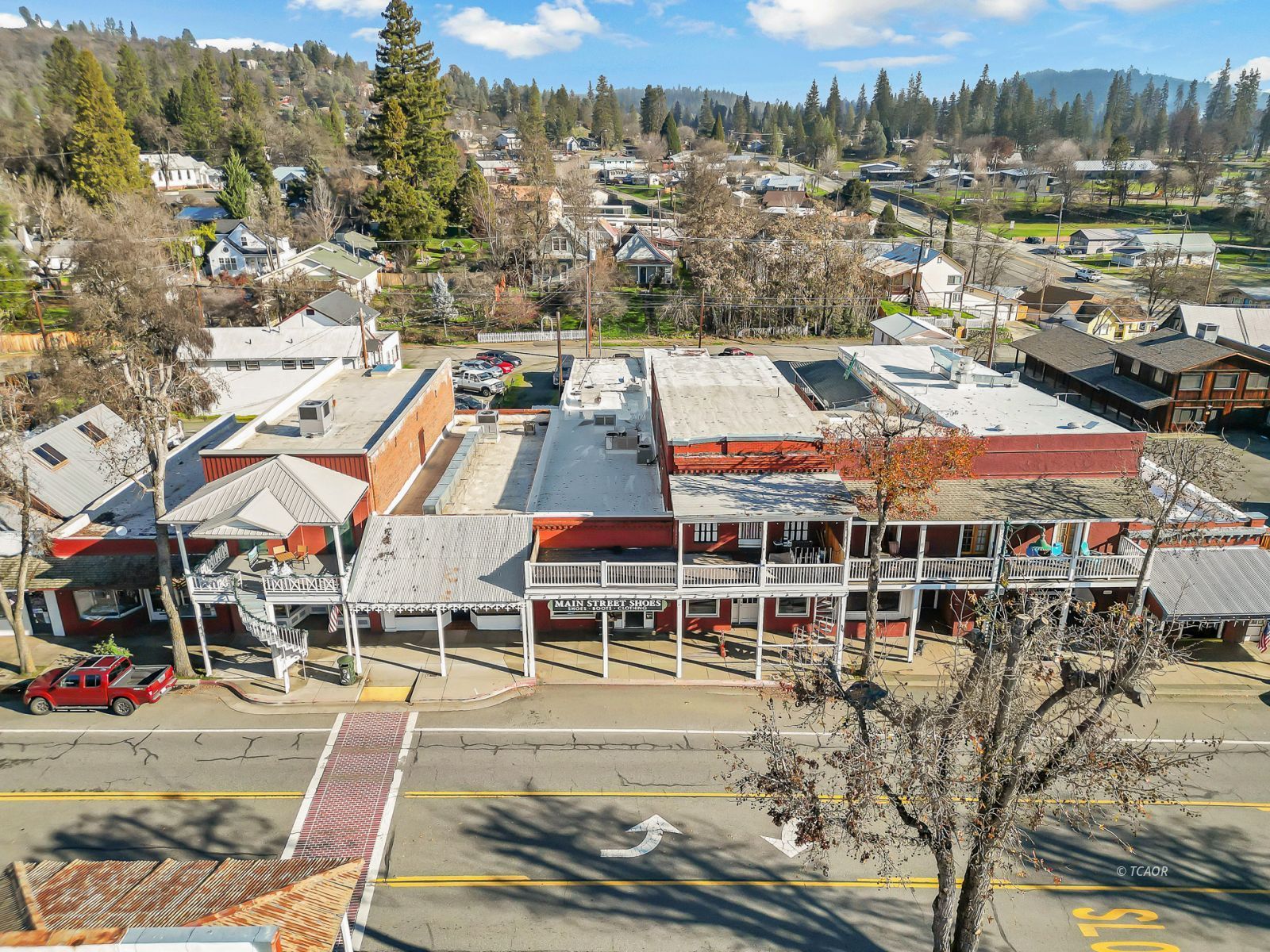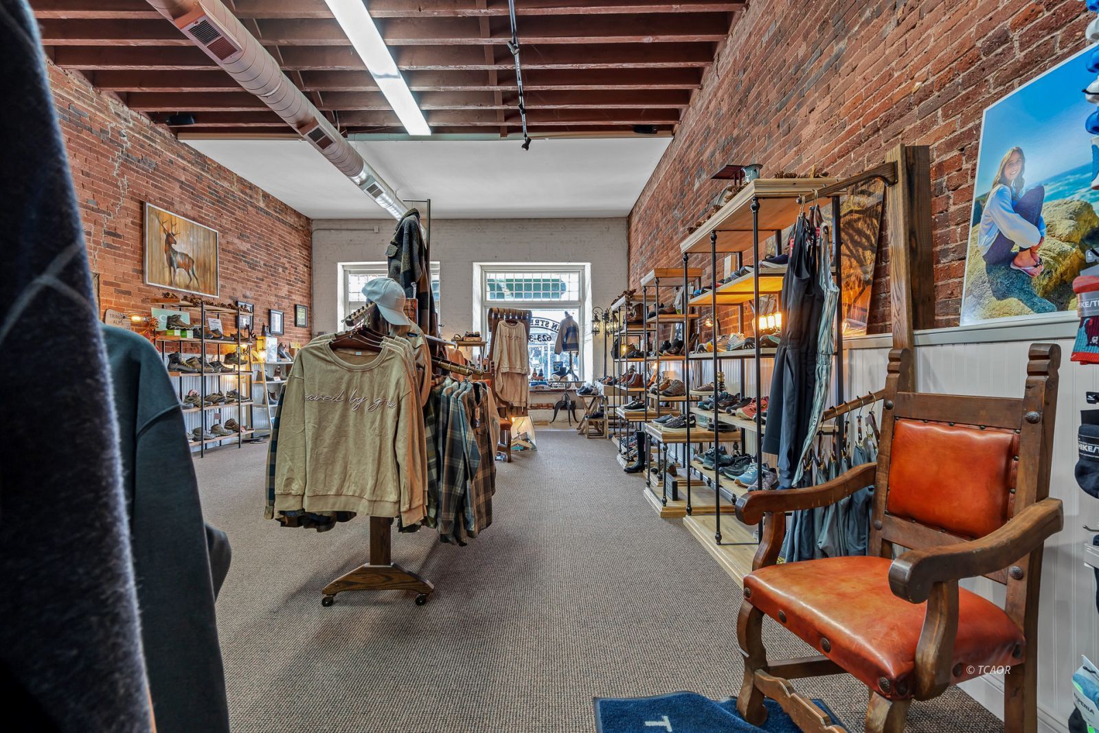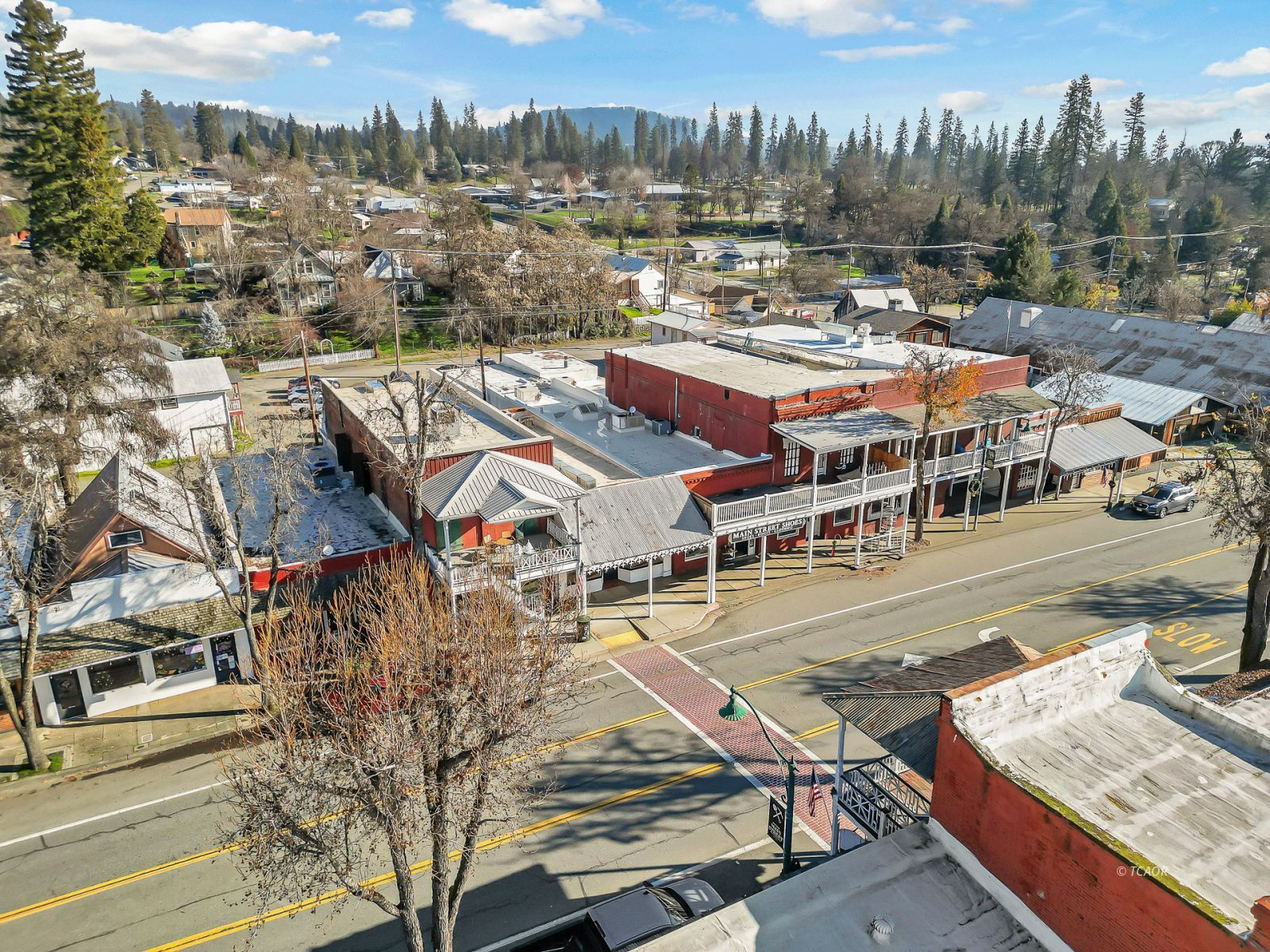 Situated on Main Street in the heart of historic Weaverville, this character-rich commercial building blends timeless appeal with exceptional visibility. Featuring Highway 299 frontage, the property benefits from steady pedestrian and vehicle traffic-an ideal setting for a boutique retail concept, gallery, studio, or specialty business. The 1,540 sq ft front showroom offers an elegant, light-filled environment with oversized picture windows, tile entry, exposed brick walls, and soaring fir ceilings. A dressing room and half bath enhance functionality, while the layout creates a refined and intimate shopping experience. Existing display fixtures may be negotiated separately. (Inventory not included.) The rear portion offers 1,100 sq ft and includes a tanning room, two large storage rooms, office area, extensive shelving, and a separate entrance. Shelving may be removed to maximize flexibility. With vision and updates, the property offers potential for a live/work conversion, allowing residence and business within one distinctive historic space. A rare opportunity to own a boutique-caliber property in one of Weaverville's most charming and established locations.