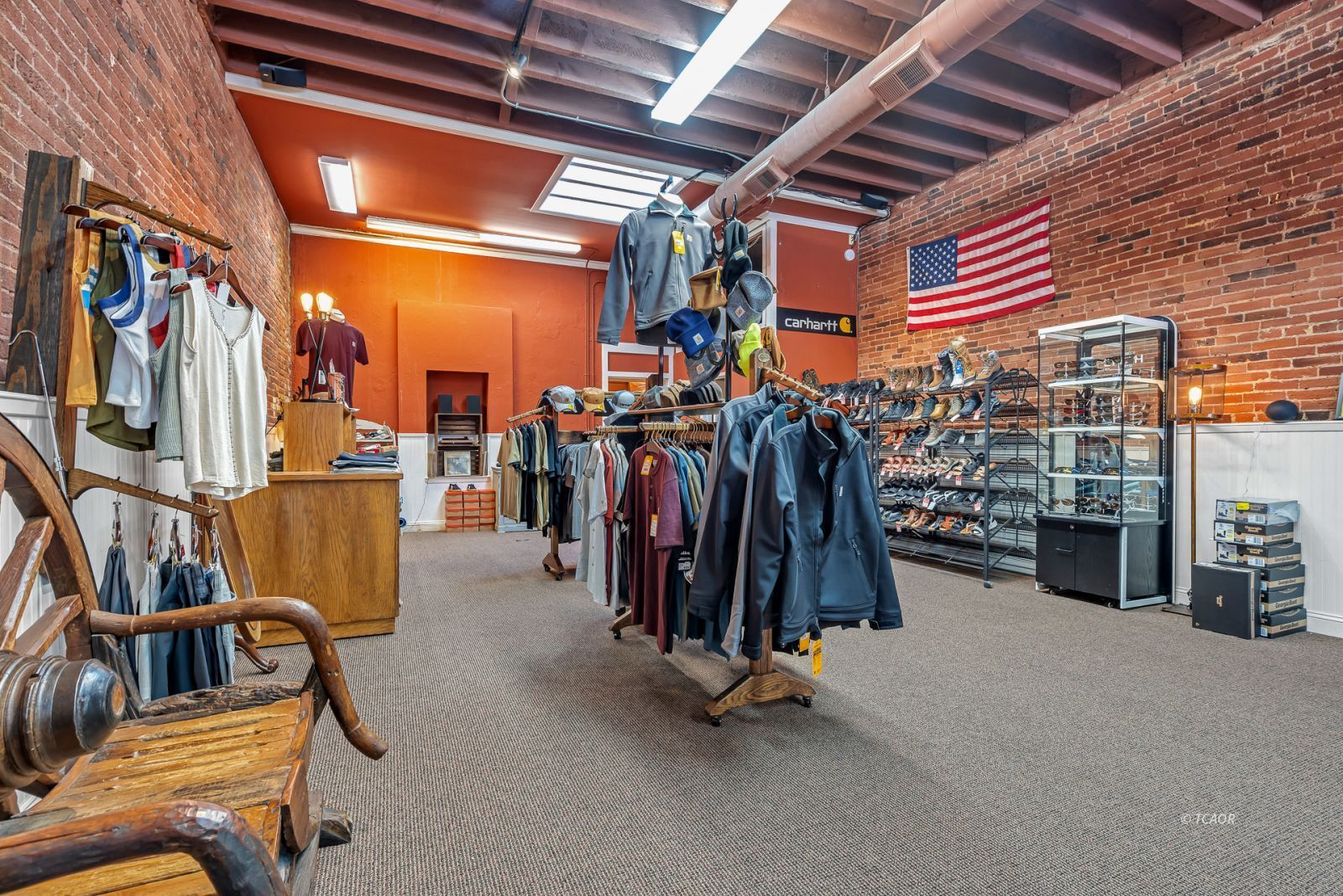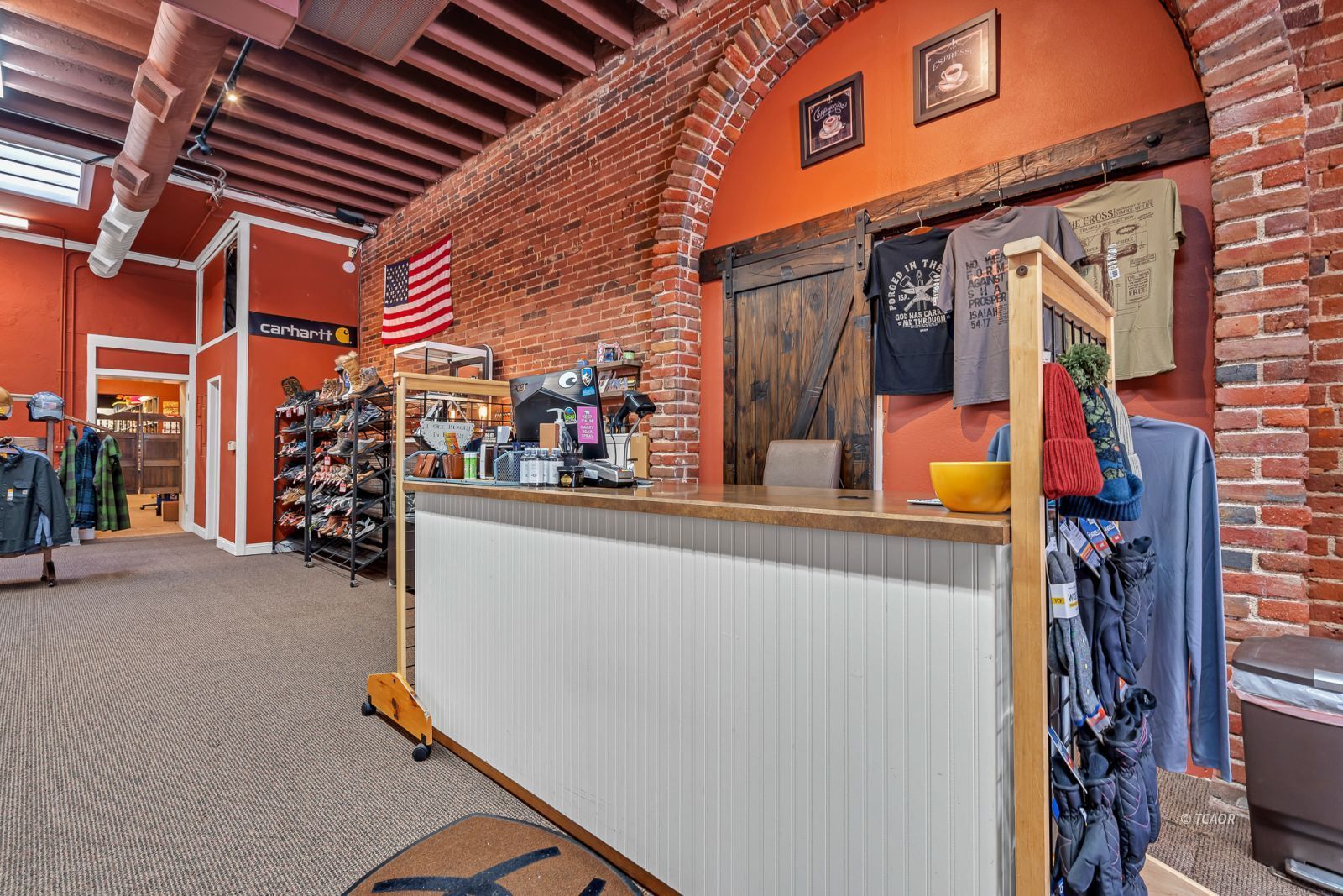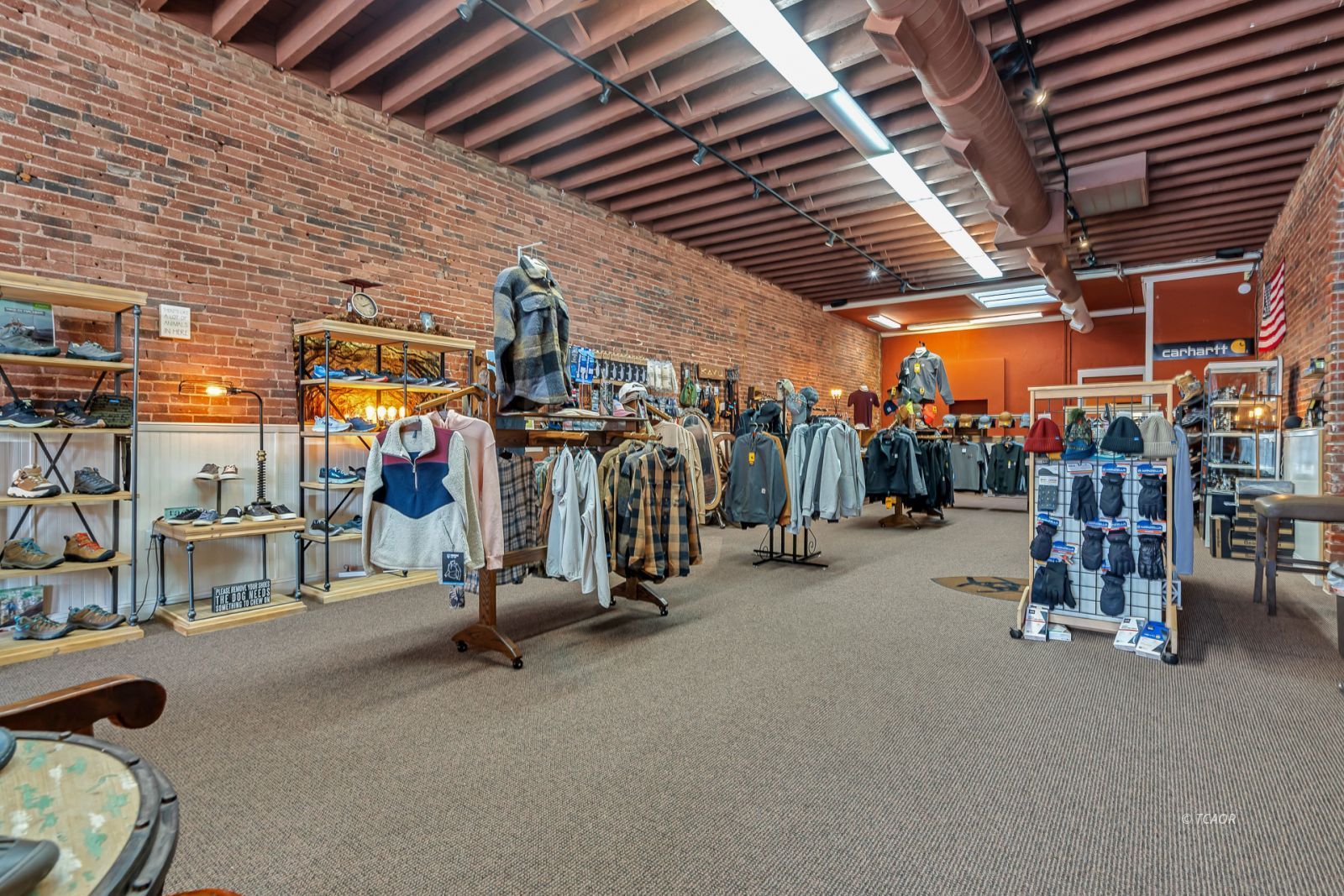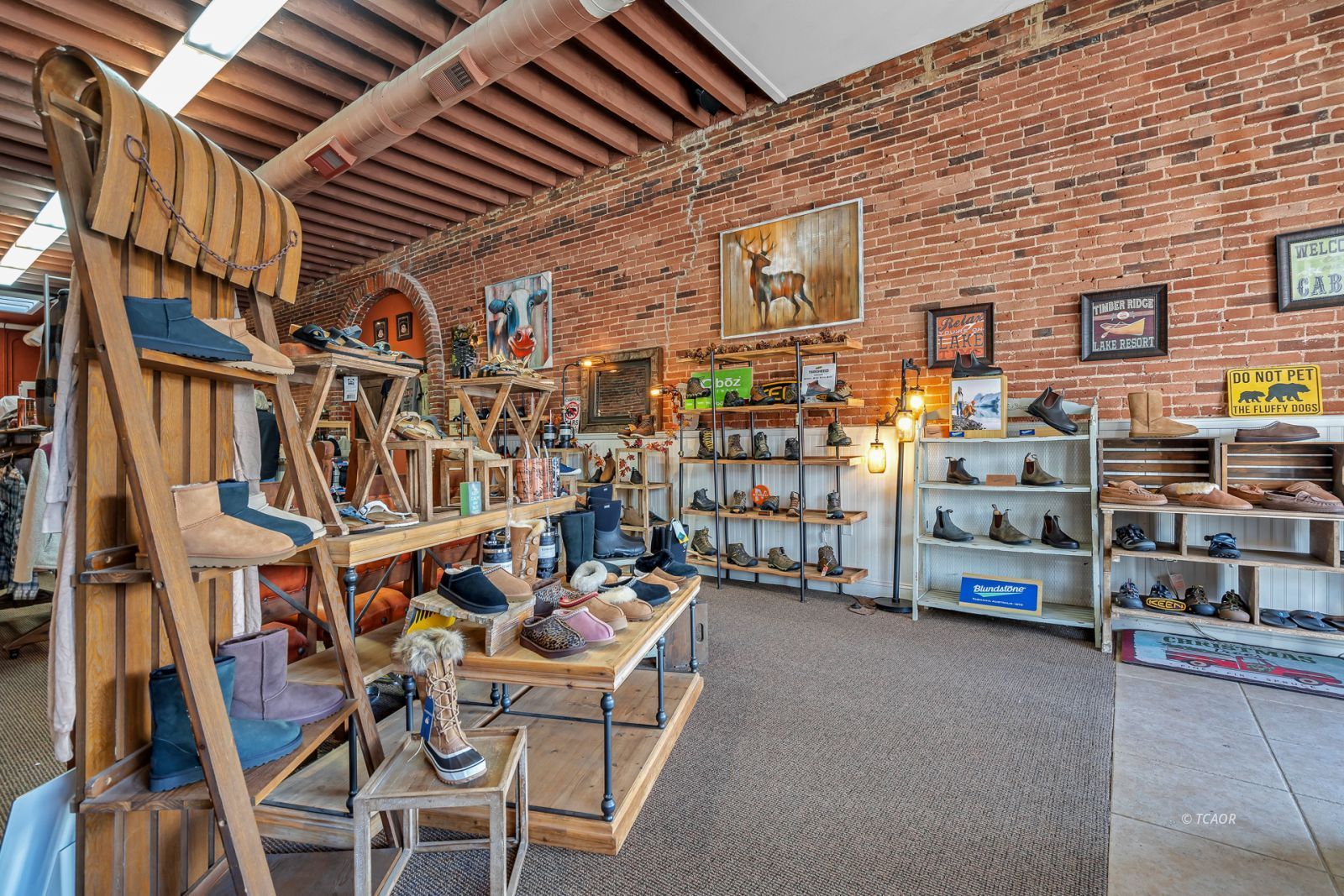 Situated on Main Street in the heart of historic Weaverville, this character-rich commercial building blends timeless appeal with exceptional visibility. Featuring Highway 299 frontage, the property benefits from steady pedestrian and vehicle traffic-an ideal setting for a boutique retail concept, gallery, studio, or specialty business. The 1,540 sq ft front showroom offers an elegant, light-filled environment with oversized picture windows, tile entry, exposed brick walls, and soaring fir ceilings. A dressing room and half bath enhance functionality, while the layout creates a refined and intimate shopping experience. Existing display fixtures may be negotiated separately. (Inventory not included.) The rear portion offers 1,100 sq ft and includes a tanning room, two large storage rooms, office area, extensive shelving, and a separate entrance. Shelving may be removed to maximize flexibility. With vision and updates, the property offers potential for a live/work conversion, allowing residence and business within one distinctive historic space. A rare opportunity to own a boutique-caliber property in one of Weaverville's most charming and established locations.