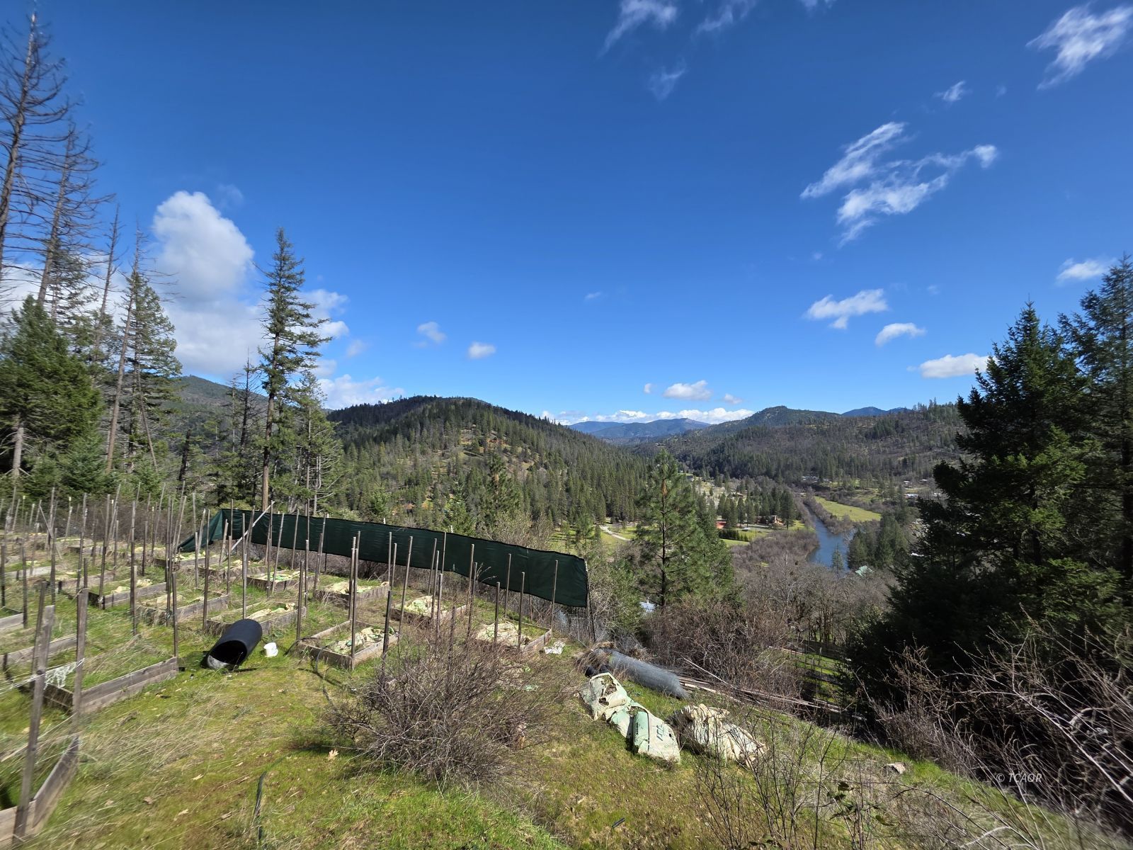 Recently remodeled 7.2 acre retreat offering privacy, sunshine, and stunning scenery. Enjoy 2 large, flat garden areas (upper and lower) with full sun, supported by new well plus large holding tanks. Relax on the spacious back deck overlooking sweeping river, valley, and mountain views while listening to the sound of flowing river water. The 1 bedroom/1 bath home has beautiful views from every window. Home is under a ramada with metal roof. Quiet, peaceful setting with a warm wood stove in the cozy living area- perfect for peaceful mountain living and garden lovers. Multiple outbuildings are in place for storage and tinkering. Convenient location located a few minutes from Hwy 299.