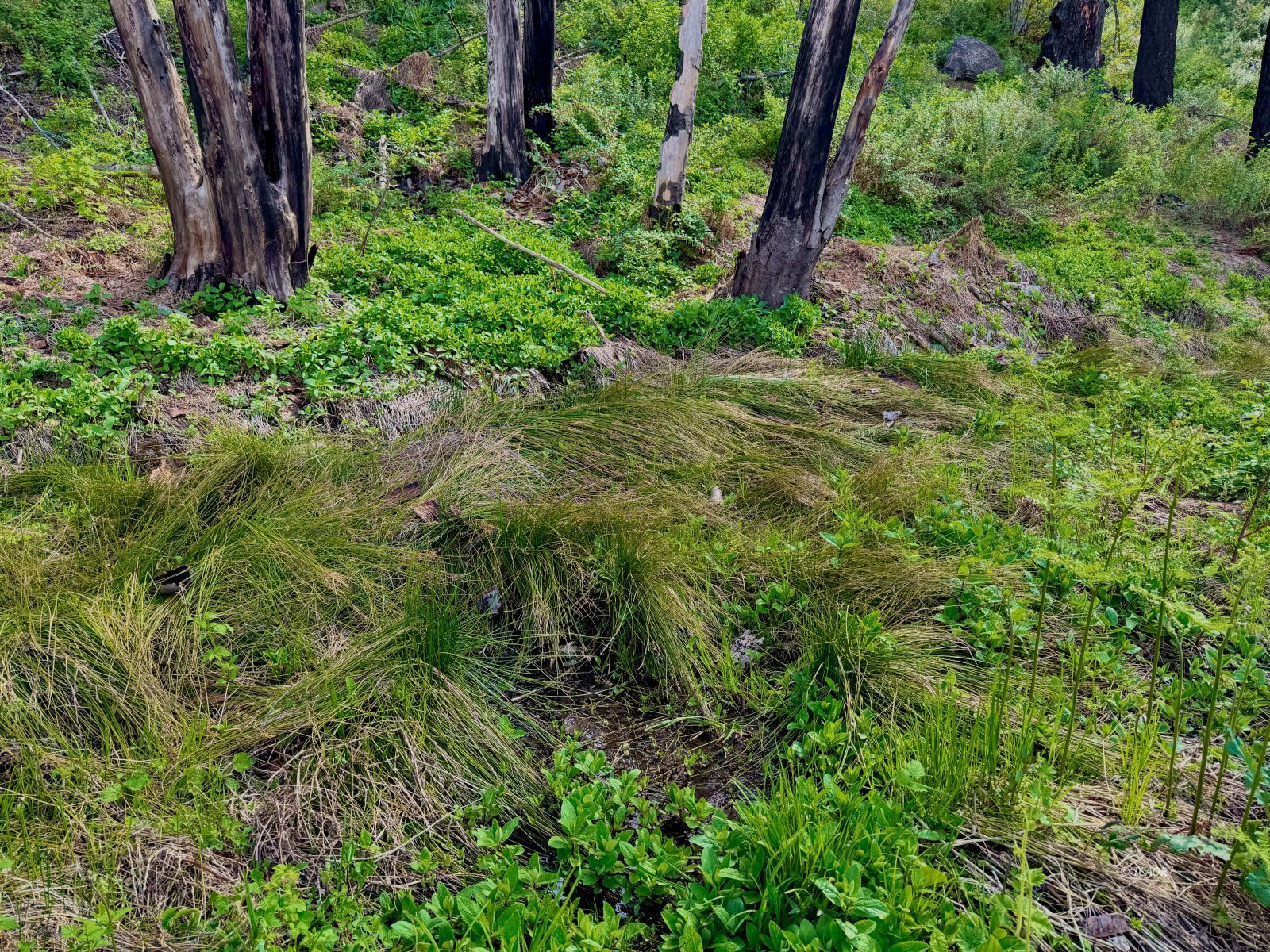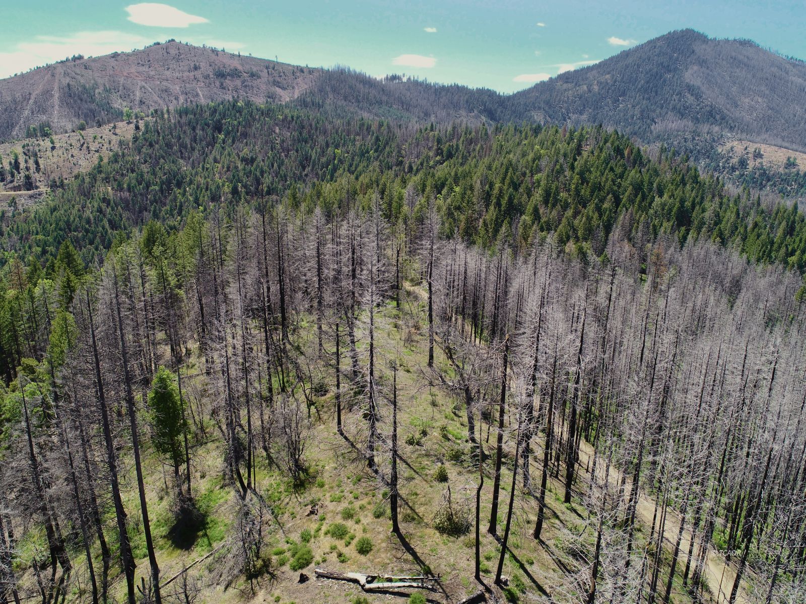 Water is not an issue with a series of year-round springs on the Northern edge of this property. One outpouring has made a small pond located in an open meadow area shining bright green on parcel maps from continuous irrigation. There are multiple points of access to the springs, providing an abundance of water with a road leading right to the wet meadow and thru beyond to access other areas and eventually the NE corner. A fire has come thru a few years ago and opened up forever views and building sites along the upper ridge, where sun is abundant. On a clear day one can look down to both the Hayfork Valley and into Junction City from the same building site. There are slightly overgrown clearings that can be cleaned and reopened to reveal a network of skid roads leading to gentler terrain below. Just a handful of sparsely inhabited neighboring parcels surround the land, and wide open logging properties on the way out to it, meaning you're at the pinnacle of serene remoteness. Snow in winter gives this area a fully fledged four seasons to enjoy as you see fit. Several miles of dirt access road behind a locked gate ensure privacy, and because of this showings are by appointment.