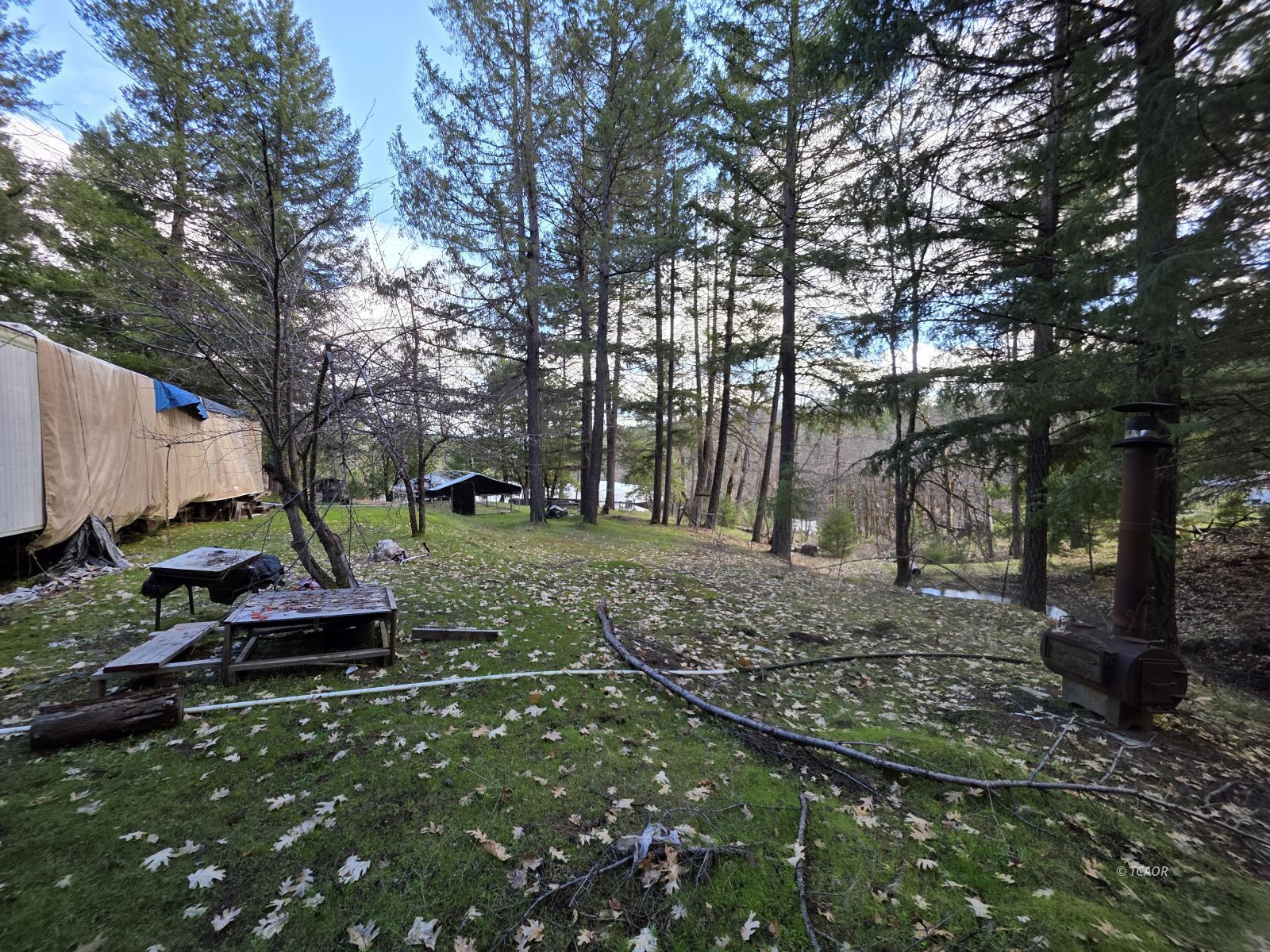 This 6.46 acre property has so much going on! There are 3 wells, one shallow (unknown gpm), and the other two newer wells being at 4 and 12 gpm per seller. A newer 1 room cabin that needs to be finished on the inside and has power and septic, a 2 car+ metal garage, a 12X30 newer outbuilding with power, old mobile home of no value, large garden area with extensive views, seasonal pond and multiple other outbuildings. The land has gentle topography and borders National Forest. This package could be the beginnings of your Trinity mountain home!