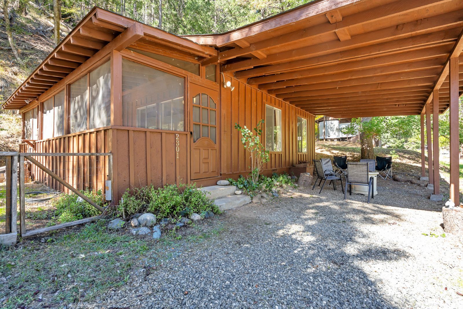 CUTE LITTLE RIVERFRONT CABIN!! Imagine fishing and boating from your own front yard! Grab a chair and relax in the shade on your own lush, green lawn while watching eagles, ospreys, otters, beavers and deer. Whether you're seeking a weekend getaway, year-round home, or a property to AirBnB, this well-made, move-in ready cabin has it all; sweeping river views, parklike setting, cool breezes, spectacular fall colors. One bedroom, one bathroom with tiled shower and tub, efficient kitchen, electronic door lock, plenty of parking. Minisplit heat/AC keeps it comfortable year round. Enjoy river views from the kitchen, living room, and shaded outdoor seating area. Large screened porch. Two car, detached garage. Surrounded by natural beauty yet only minutes to shopping and dining! Easy access for year round enjoyment. Don't miss this opportunity to own the most affordable, comfortable riverfront cabin on the Trinity River. Waterfront paradise.