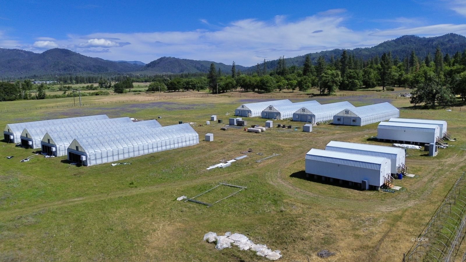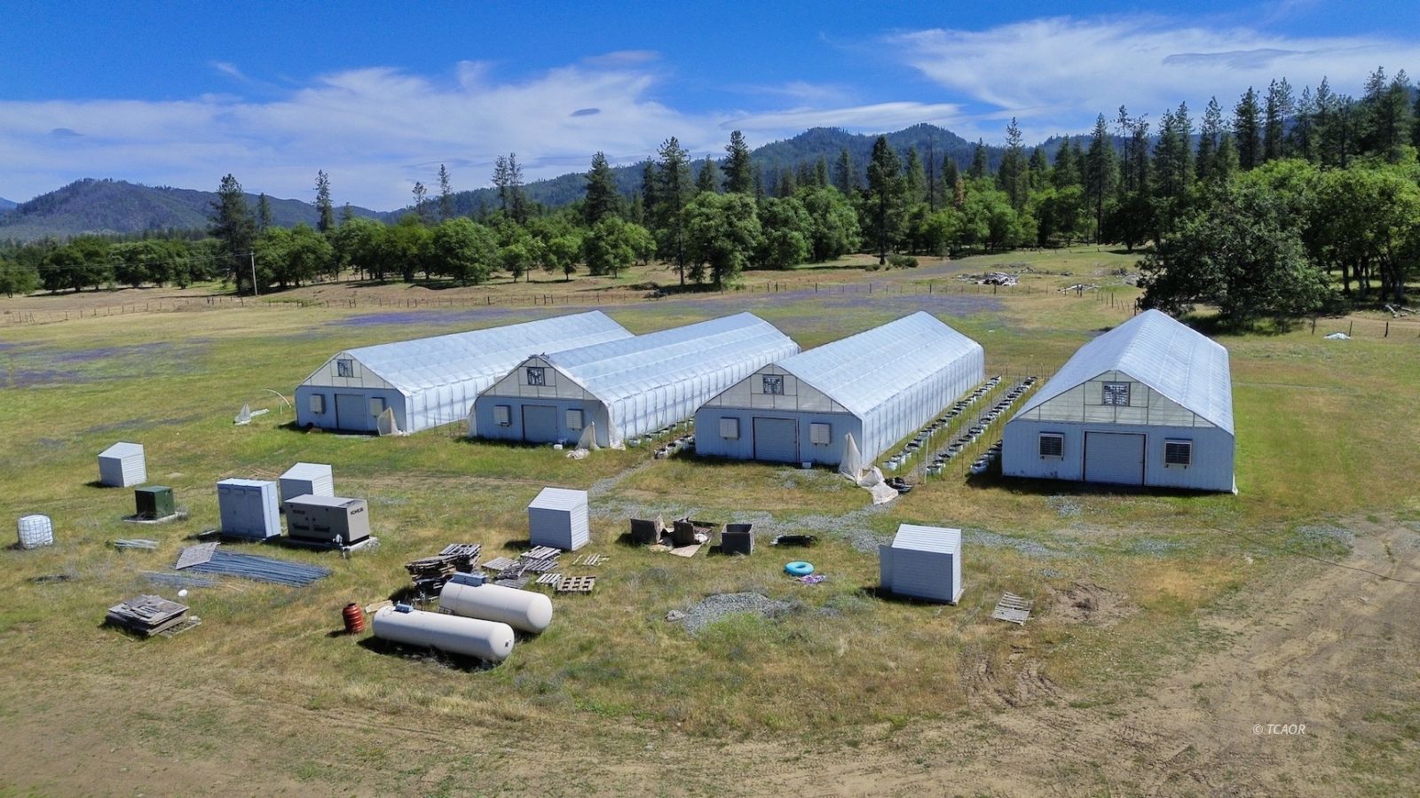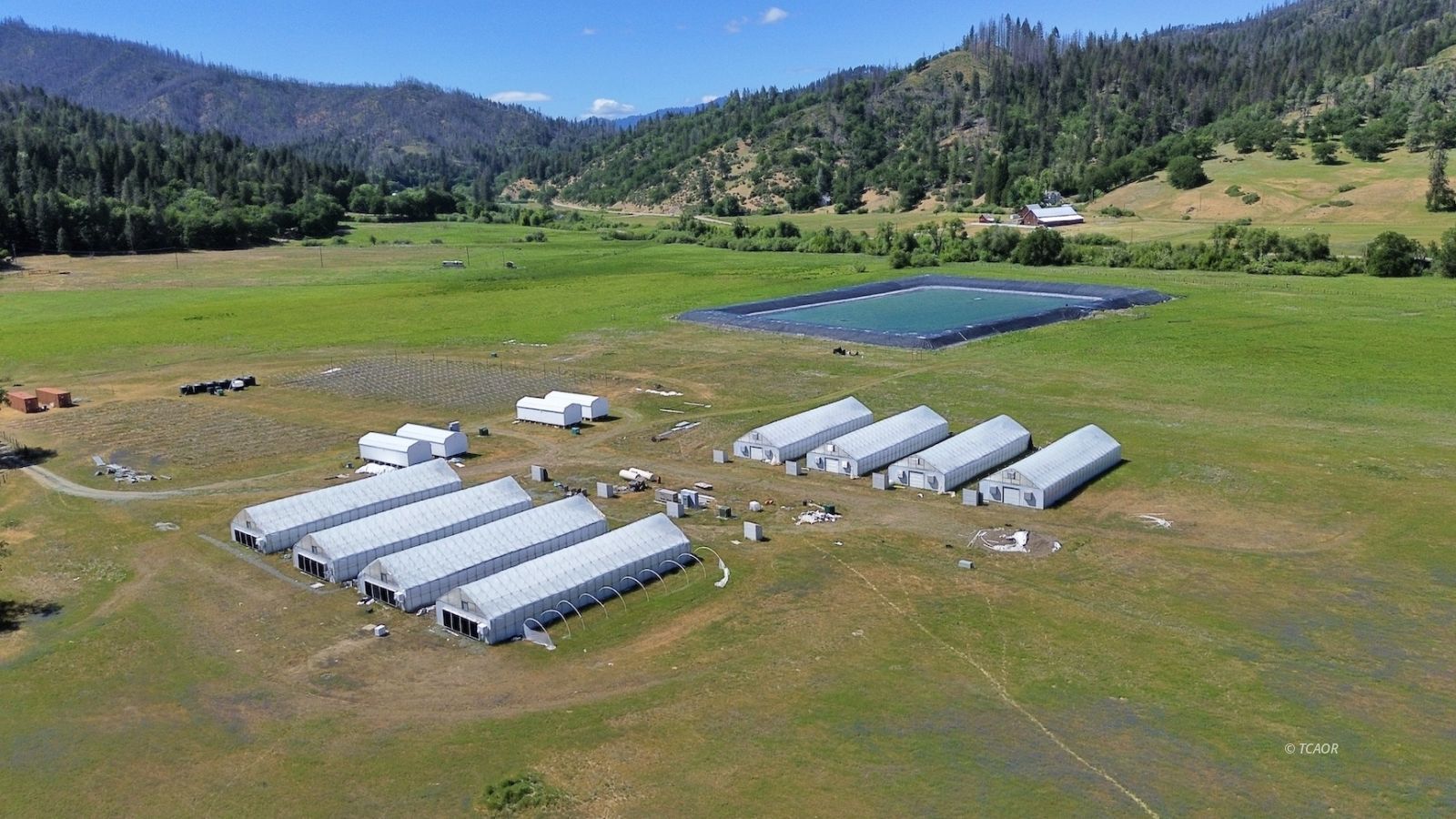 Premium farm with ML Tier 1 permits; two 10,000 sq. ft. licenses with complete CEQA. Includes a 3-bed, 3-bath, 2,350 sq. ft. split-level log home updated in 2017, featuring stunning views of woodland & mountains from the deck. Situated on two parcels totaling 85.94 fertile acres of pasture & woodland, bordering Hayfork Creek. The property boasts a massive 15M gallon engineered pond, seep well, & a 12-15 GPM (per seller) deep well. The farm has 8 engineered greenhouses, each with its own sub-panel, automated interior curtains, water walls, fans, heating & cooling systems, & more. Four processing buildings, each w/ 36k BTU mini-splits & more. Power is robust with multiple panels supplying the home, worker's camp, & farm, including two 400-amp 3-phase panels (one is upgradable to 800 amps). Backup power is assured with 150KW & 60KW 3-phase Kohler generators to make sure the farm never goes down and your crop is protected. Equipment and supplies included. Camp area features a small cabin with loft to house workers along with a large metal carport. Whether you're expanding an existing operation or starting a new venture, this property is primed for success. A rare opportunity!