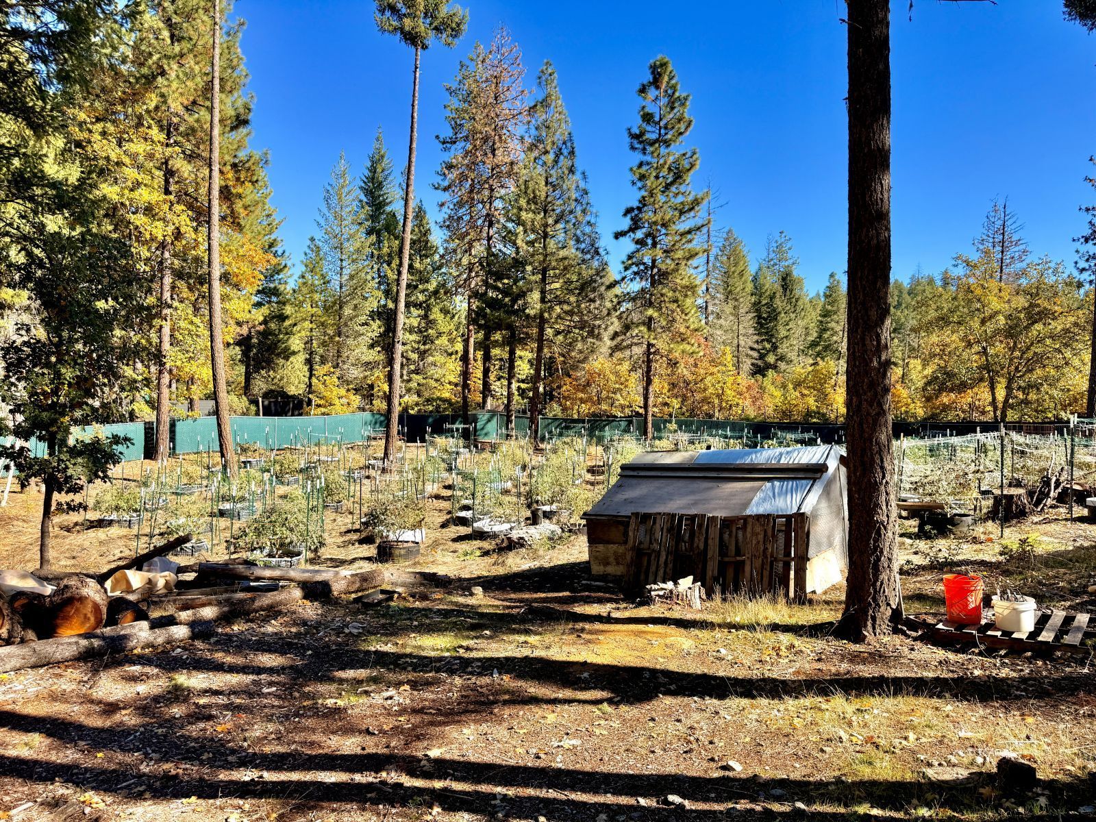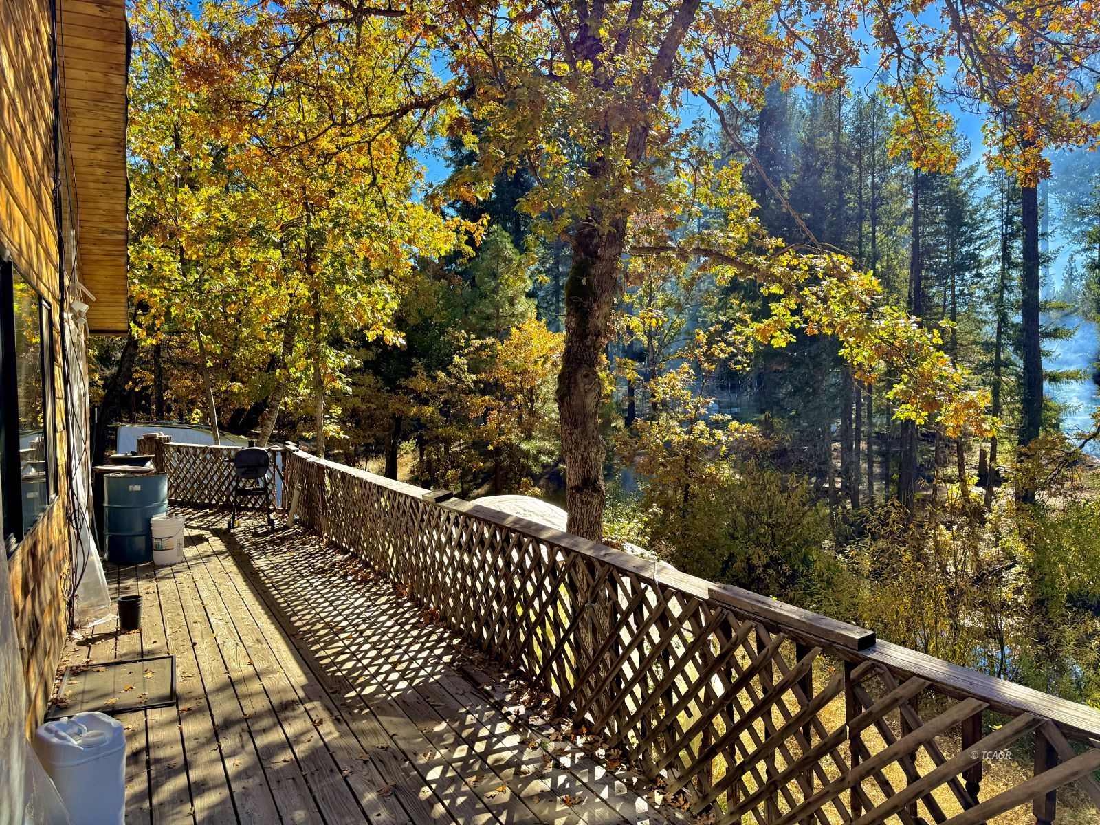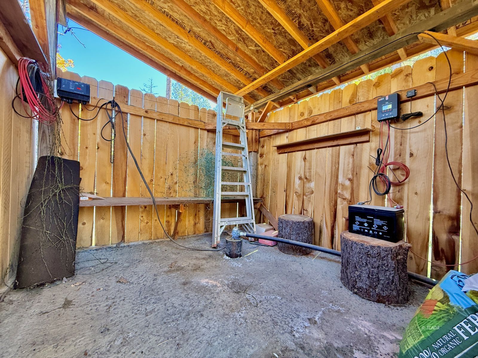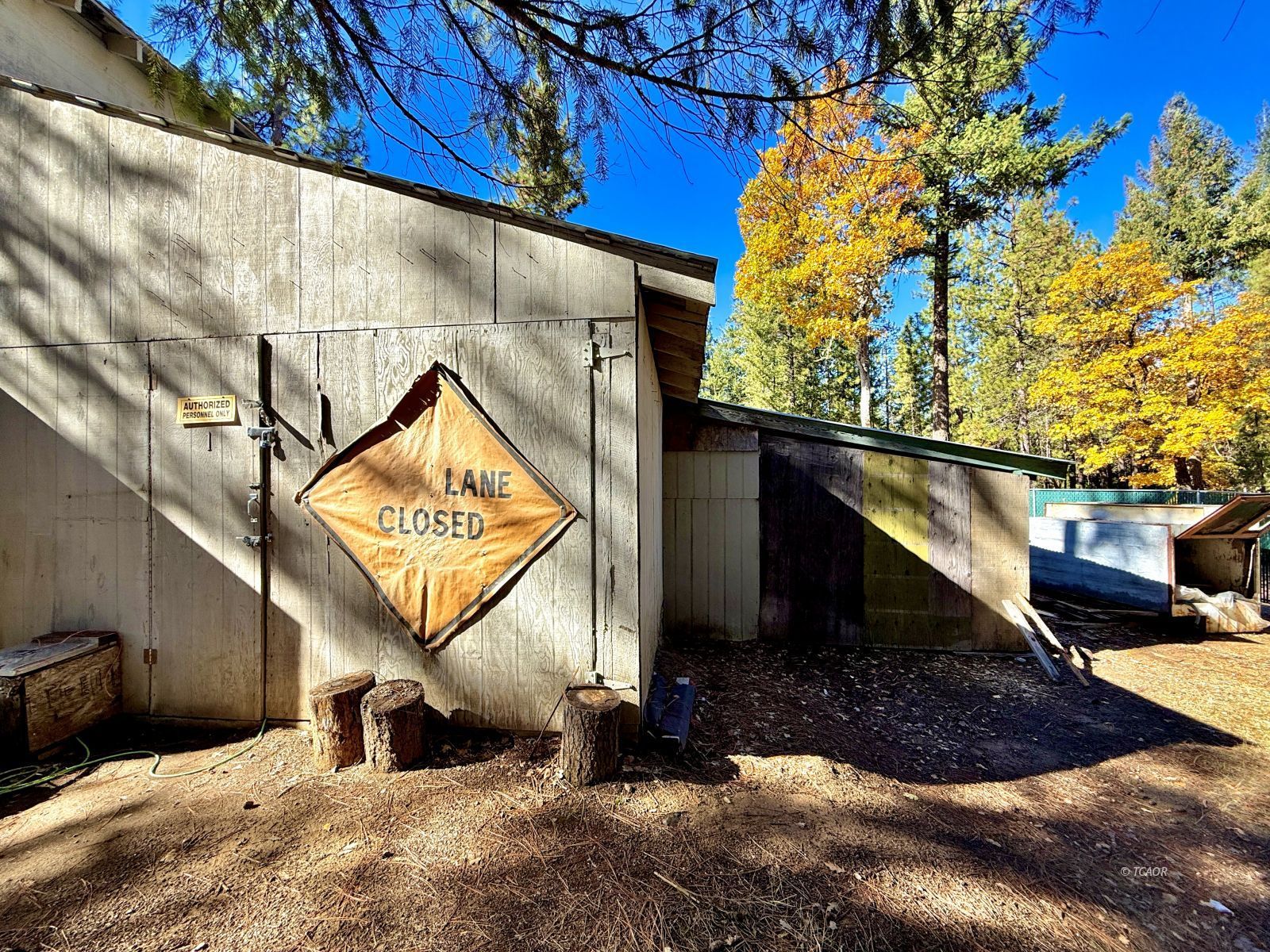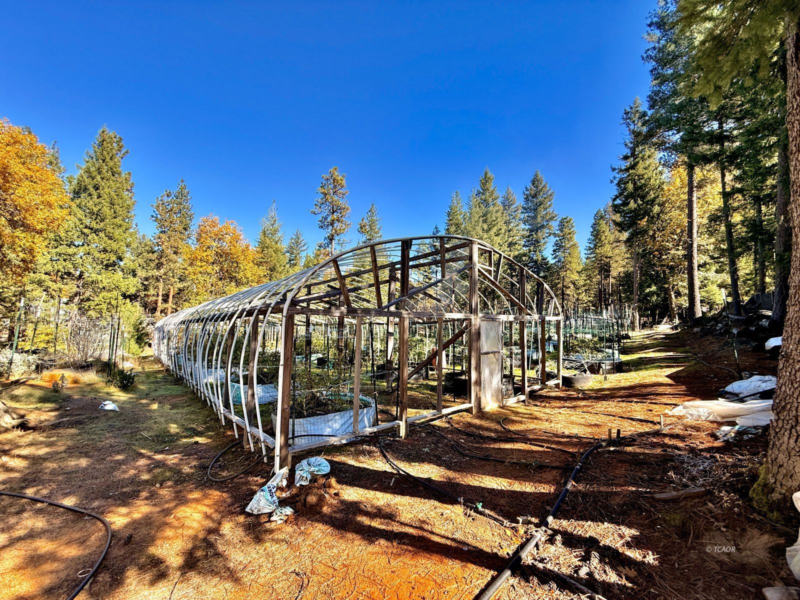 Two adjacent 1.5+ acre lots each with garden sites and solid temporary greenhouses already set up... Newest well and solar water pump components are only 3 years old. A larger 3BD/2BA home with cathedral ceilings and exposed beams. The wrap around deck would make for great outdoor entertaining in the summer overlooking the pond. This well established ranchette was left abandoned a few years ago and will need some plumbing repairs and finishing touches to become a fully functioning residence again. Property is set up for off-grid living with generator wiring, some solar features and a wood-fuel cook stove. After cleanup and repairs, this could be one of the largest, most solid and complete homes in the Trinity Pines subdivision. There's a small pond on the property, bearing water year-round with bass and goldfish. The large garage/barn has room for several cars on the ground level, but also has workshop spaces on each side and an upstairs area for additional storage or an ADU apartment for guests. Parts of garage are insulated with reflective panels and it's fully wired for electric. Both parcels are fully fenced.