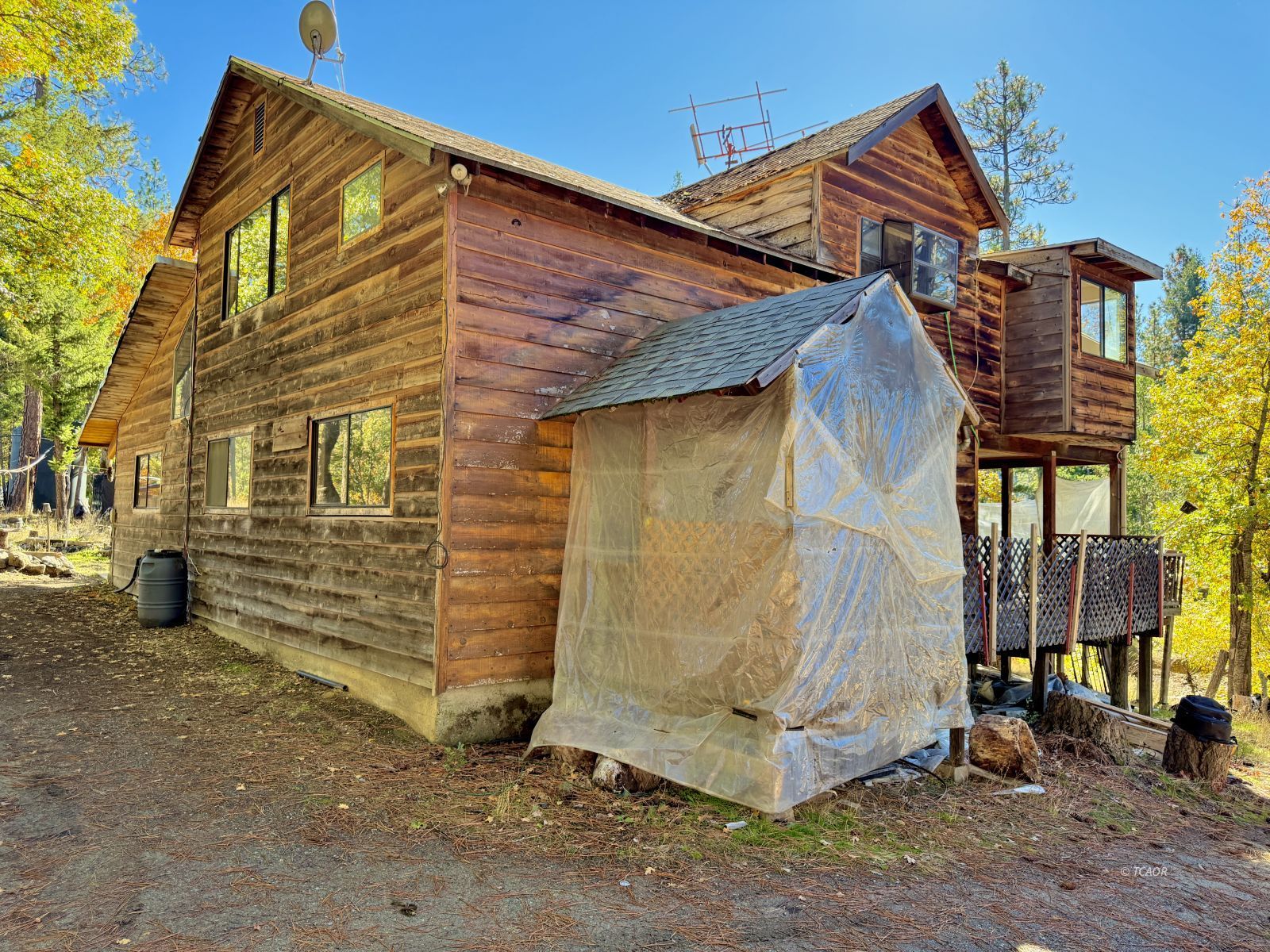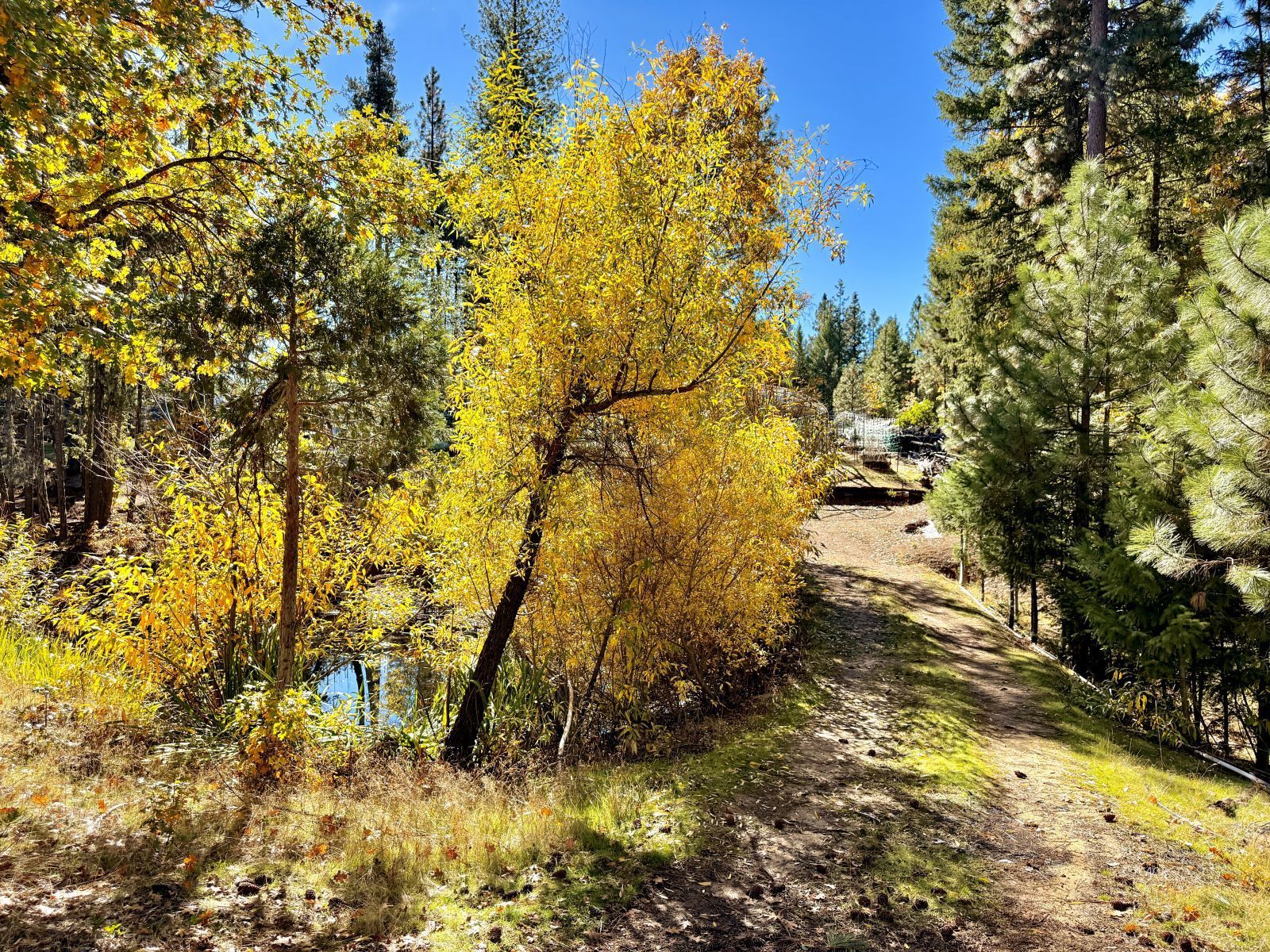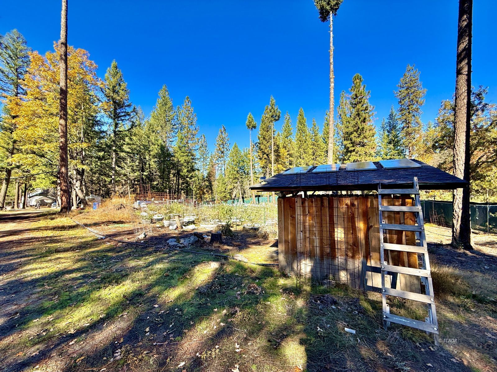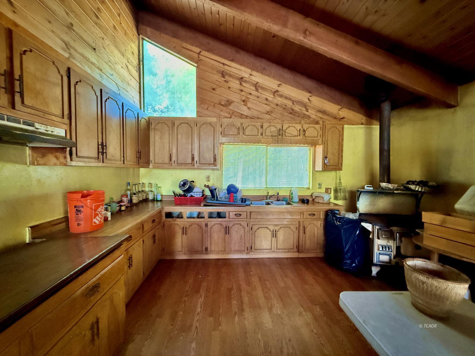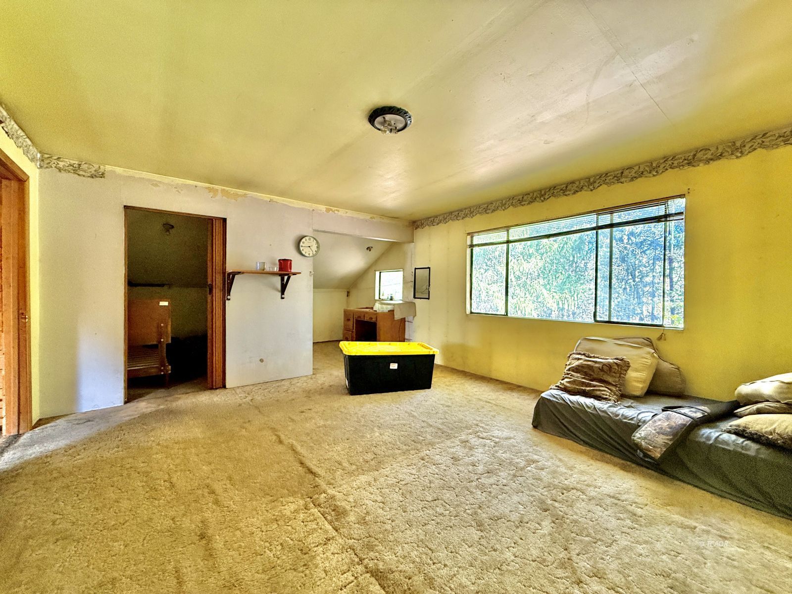 Two adjacent 1.5+ acre lots each with garden sites and solid temporary greenhouses already set up... Newest well and solar water pump components are only 3 years old. A larger 3BD/2BA home with cathedral ceilings and exposed beams. The wrap around deck would make for great outdoor entertaining in the summer overlooking the pond. This well established ranchette was left abandoned a few years ago and will need some plumbing repairs and finishing touches to become a fully functioning residence again. Property is set up for off-grid living with generator wiring, some solar features and a wood-fuel cook stove. After cleanup and repairs, this could be one of the largest, most solid and complete homes in the Trinity Pines subdivision. There's a small pond on the property, bearing water year-round with bass and goldfish. The large garage/barn has room for several cars on the ground level, but also has workshop spaces on each side and an upstairs area for additional storage or an ADU apartment for guests. Parts of garage are insulated with reflective panels and it's fully wired for electric. Both parcels are fully fenced.