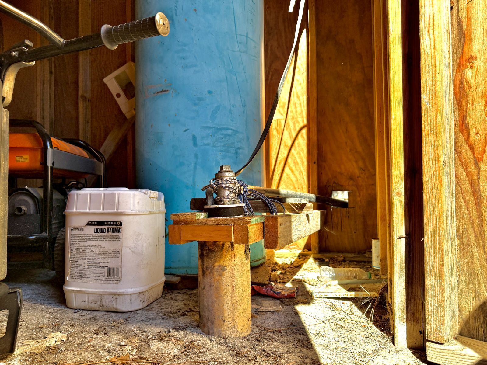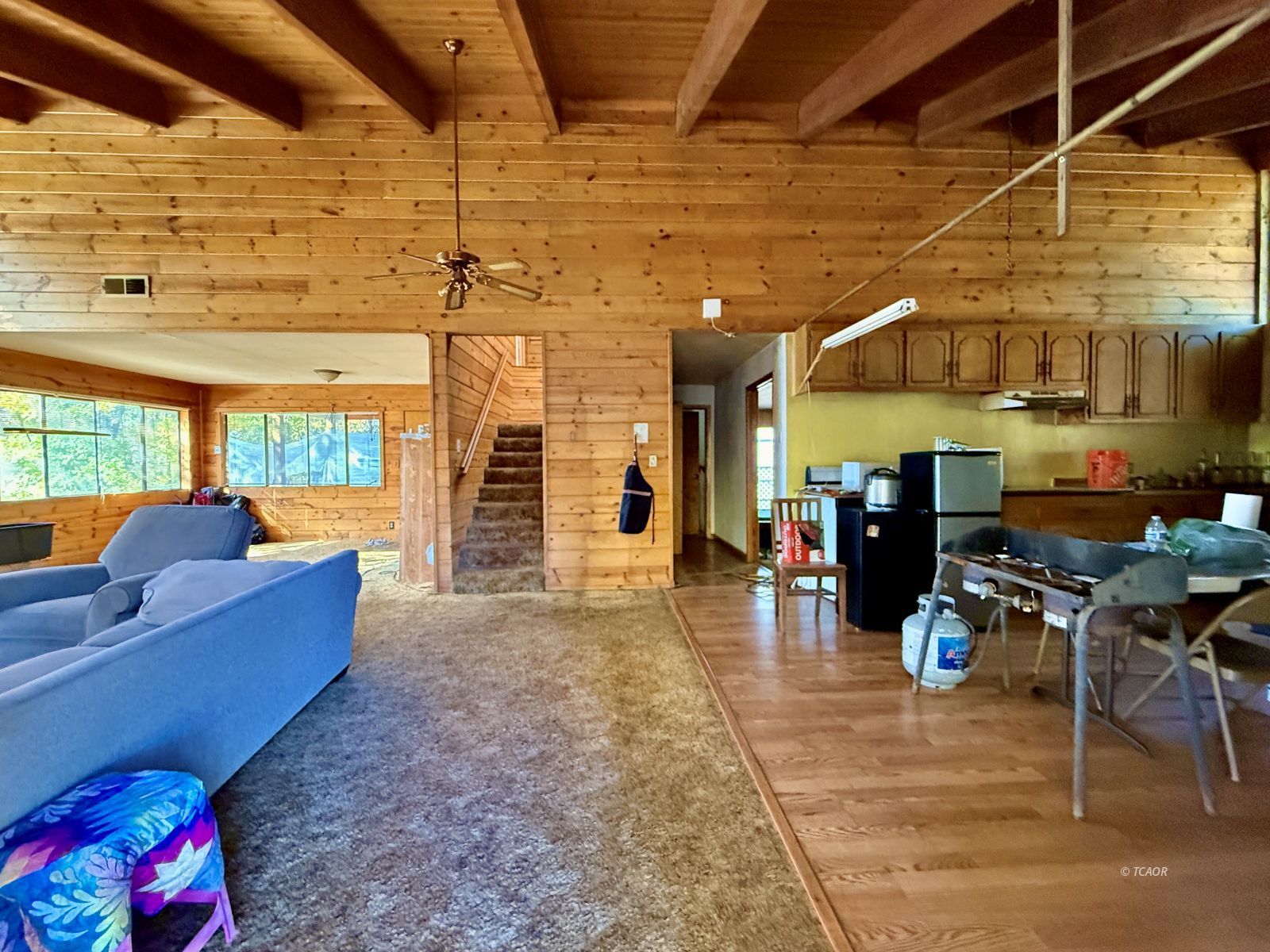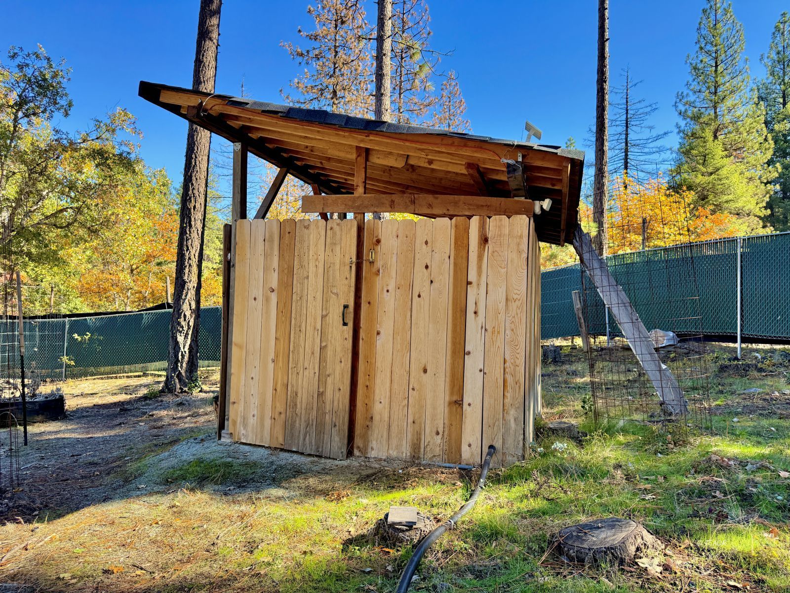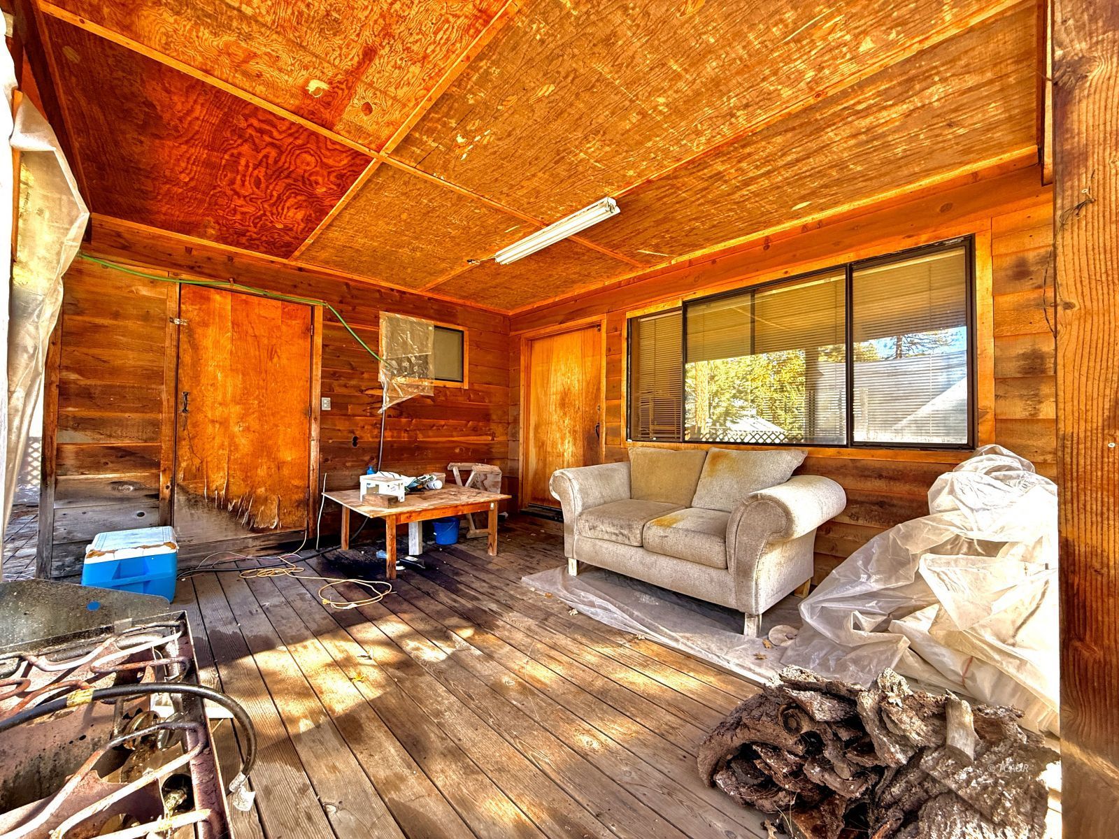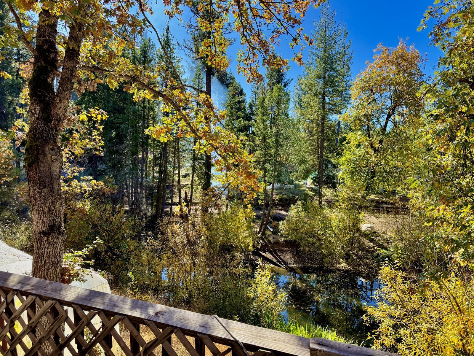Two adjacent 1.5+ acre lots each with garden sites and solid temporary greenhouses already set up... Newest well and solar water pump components are only 3 years old. A larger 3BD/2BA home with cathedral ceilings and exposed beams. The wrap around deck would make for great outdoor entertaining in the summer overlooking the pond. This well established ranchette was left abandoned a few years ago and will need some plumbing repairs and finishing touches to become a fully functioning residence again. Property is set up for off-grid living with generator wiring, some solar features and a wood-fuel cook stove. After cleanup and repairs, this could be one of the largest, most solid and complete homes in the Trinity Pines subdivision. There's a small pond on the property, bearing water year-round with bass and goldfish. The large garage/barn has room for several cars on the ground level, but also has workshop spaces on each side and an upstairs area for additional storage or an ADU apartment for guests. Parts of garage are insulated with reflective panels and it's fully wired for electric. Both parcels are fully fenced.