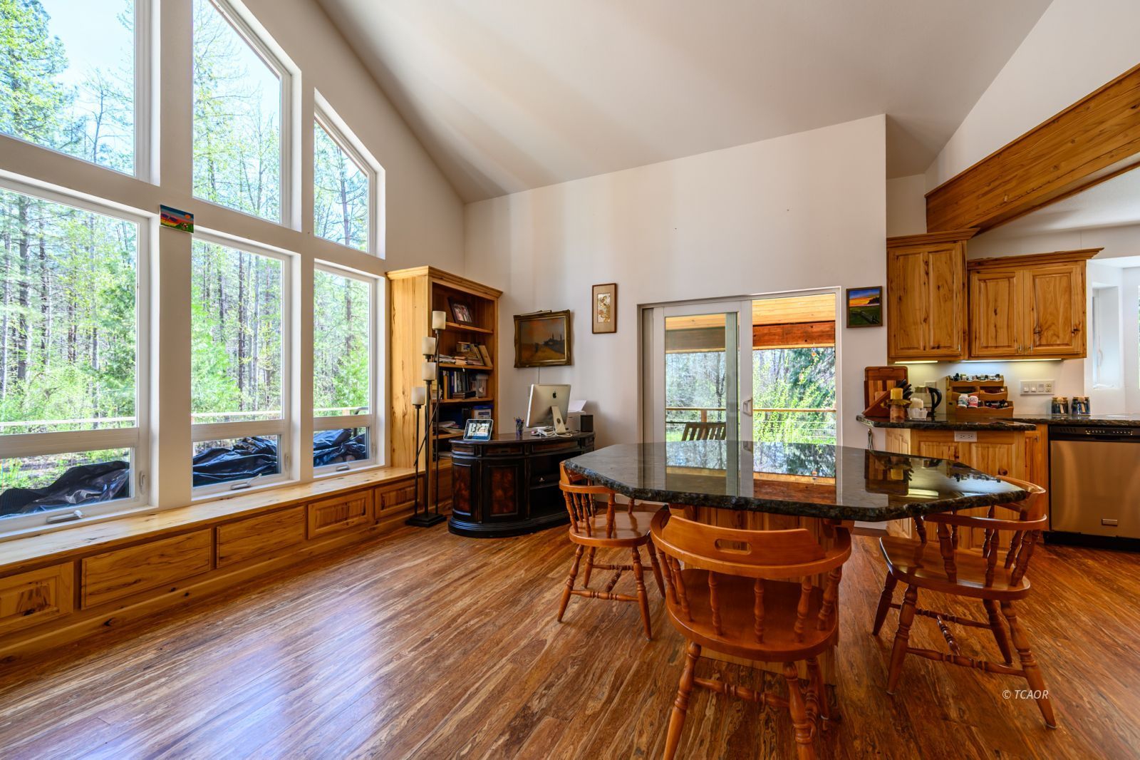 Experience the rare opportunity to own a custom riverfront estate on 39 acres with the iconic Trinity River flowing through your property and a private riverside campsite. Bordering both BLM land and National Forest, this setting offers unmatched privacy and direct access to endless outdoor recreation just minutes from Trinity Lake, Lewiston Lake, and the Trinity Alps Wilderness. The 3,300 sq ft custom home features 3 bedrooms and 4 bathrooms with stunning hardwood floors of walnut, mahogany, cherry, and ash. The chef's kitchen showcases striking live-edge labradorite countertops and rich Oak cabinetry. Designed for comfort and resilience, the home includes a cozy wood stove, central vacuum system, and whole-house generator, plus a 40x40 shop with three roll-up doors. Ideal for fishermen, outdoor enthusiasts, or those seeking a self-sufficient lifestyle, this exceptional property blends luxury, natural beauty, and tranquility in one unforgettable setting.
