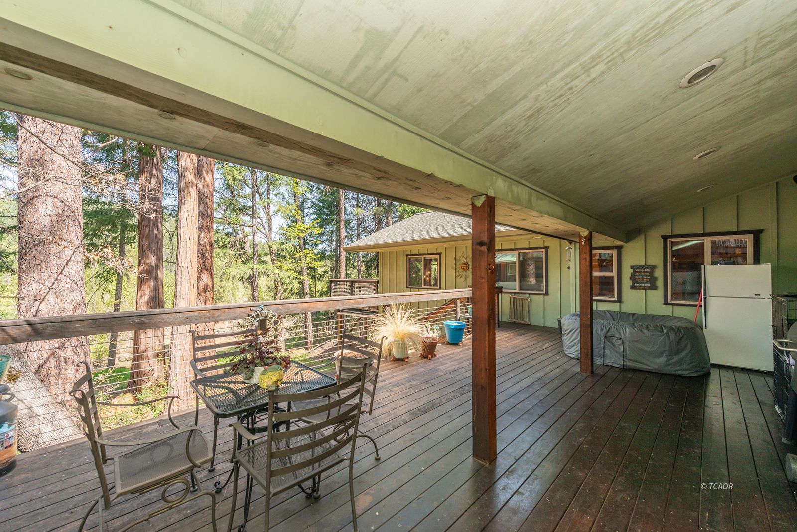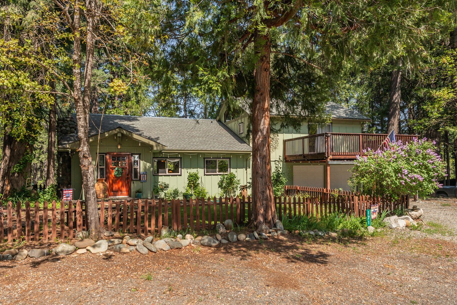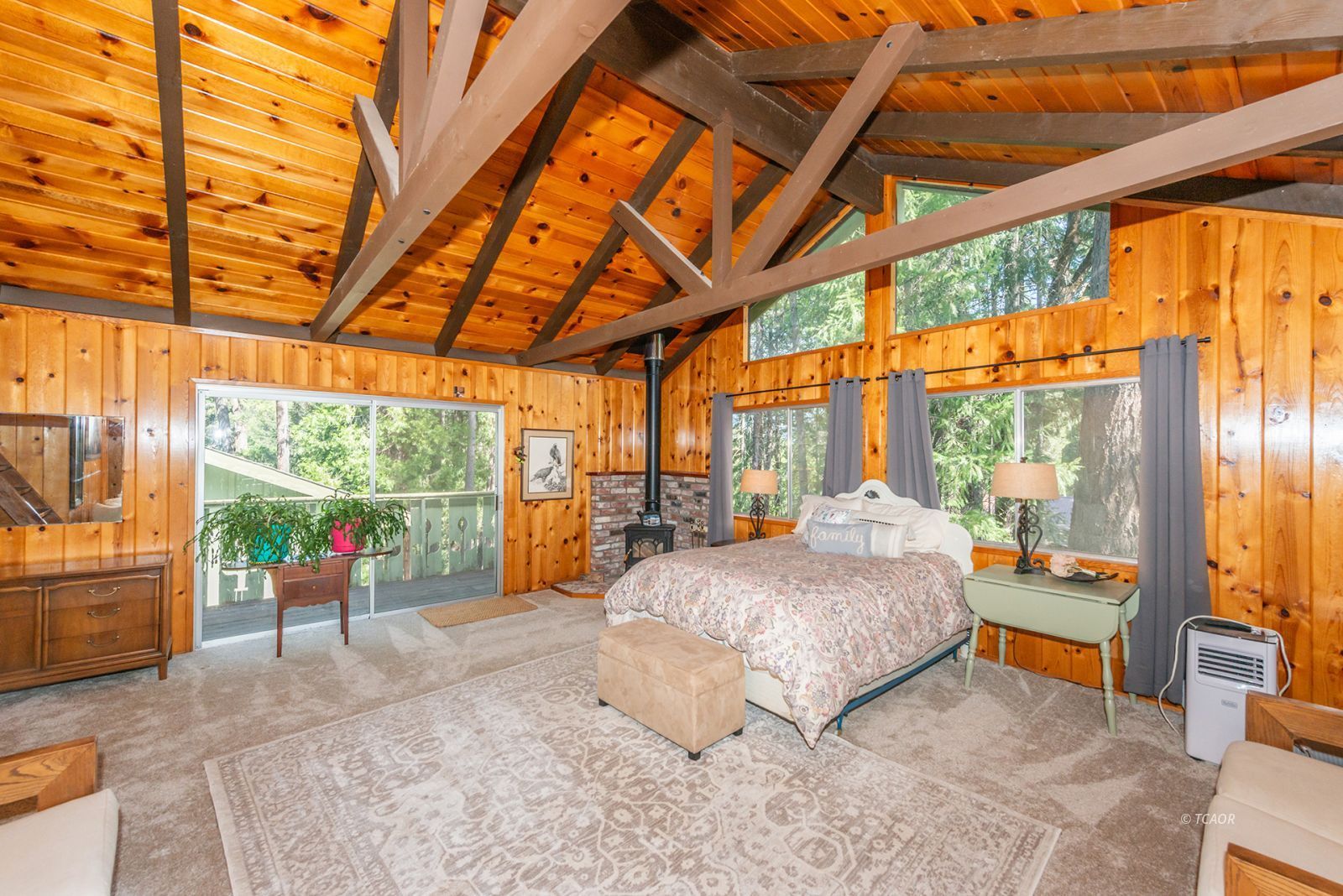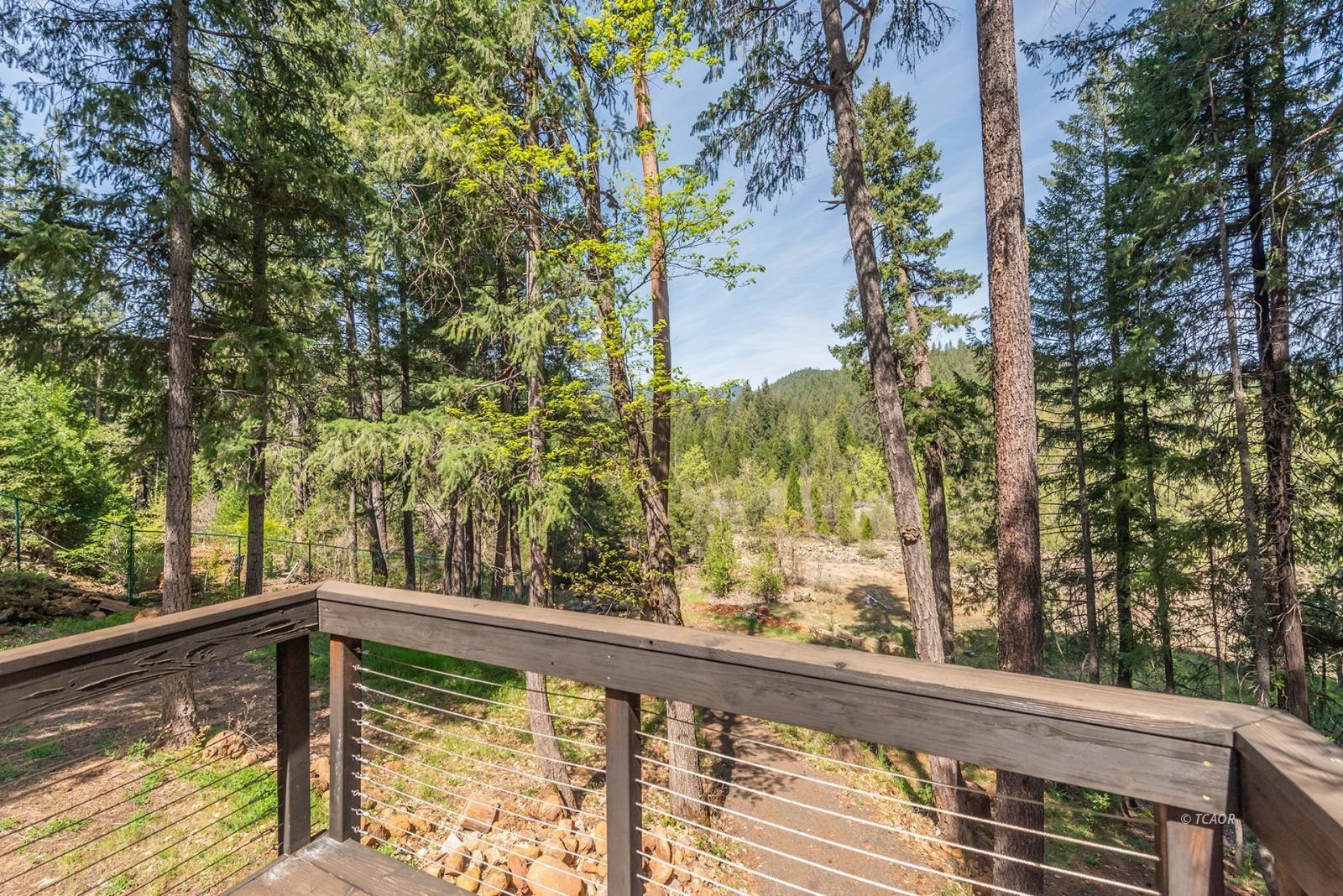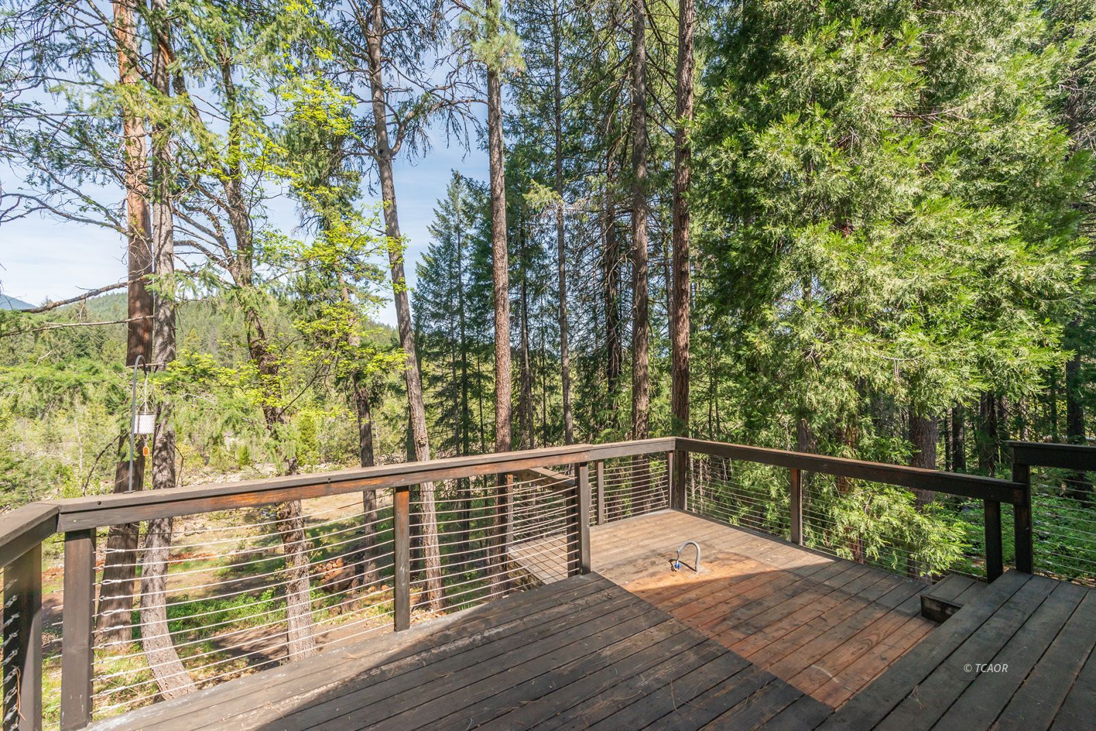 Beautifully restored in 2008, this home offering 2,174 sq ft with 2 spacious primary ensuite bedrooms and 2.5 baths. Blending historic character with modern updates, the home features Douglas fir hardwood doors, trim, and window casings, tile entry, and engineered hardwood flooring in the main living areas.Kitchen includes granite countertops, Hickory cabinetry, and walk-in pantry. Dining room flows to living area both with French doors leading to covered back deck, plus a cozy sitting room with custom carpet and floor-to-ceiling blue pine shelving.Main-level primary suite offers walls of windows, French doors to a private deck, and spa-style bath with radiant heated tile floors, soaking tub, granite counters, and walk-in tile shower. Upstairs features a large second primary suite with balcony access, front deck, and loft. Additional amenities include half bath on main level, attached 2-car garage with workshop, lower workshop, expansive back decking with mountain and creek views, and whole-house generator (2022), all on .51 acres. Close to Trinity Lake and Trinity Alps Wilderness-ideal for year-round living or a mountain retreat.