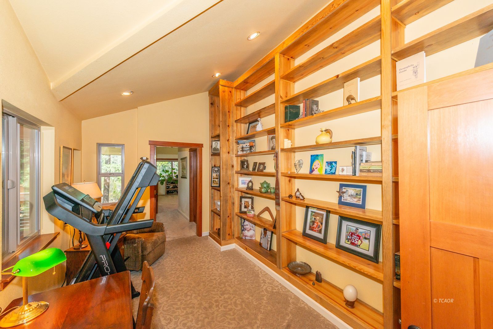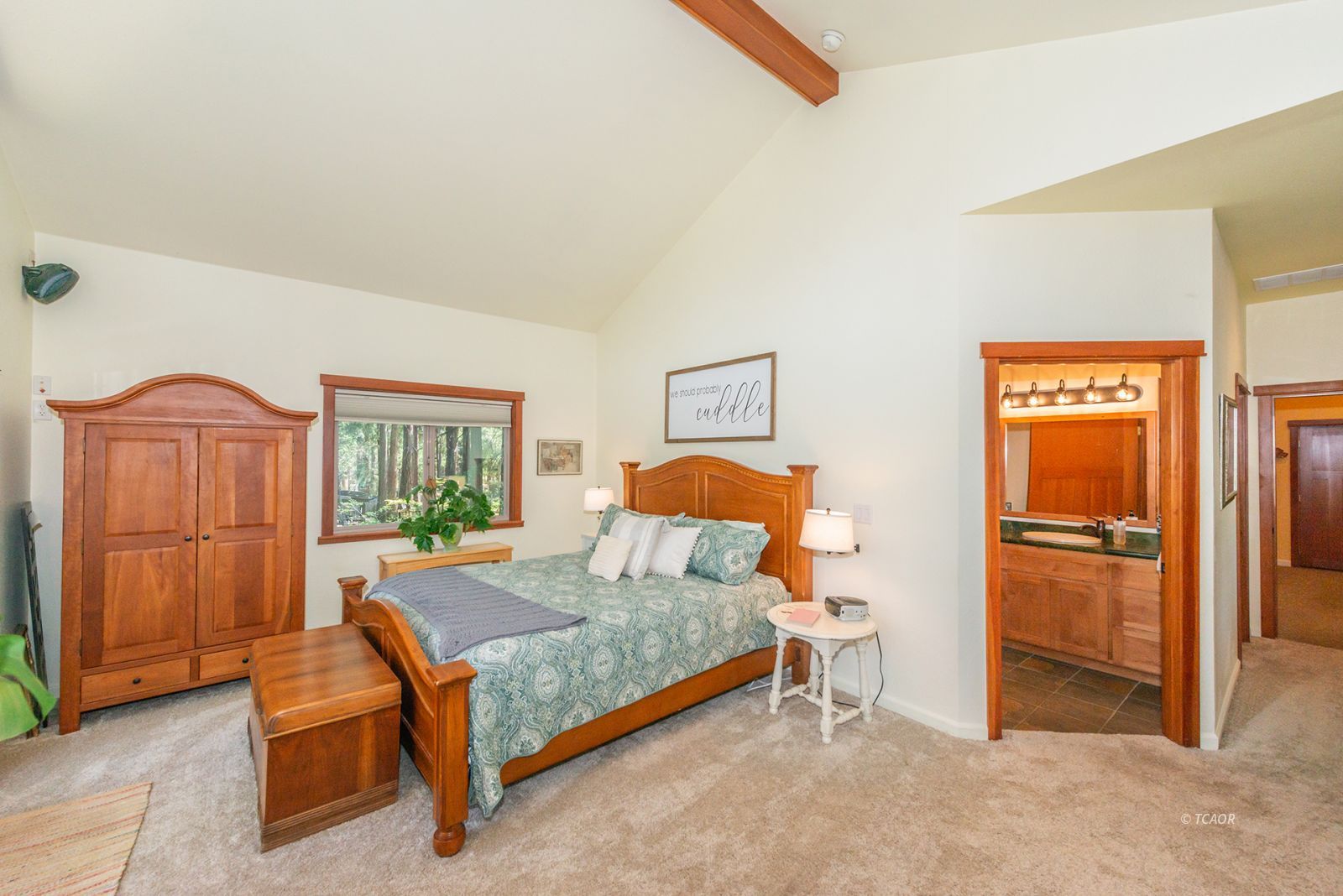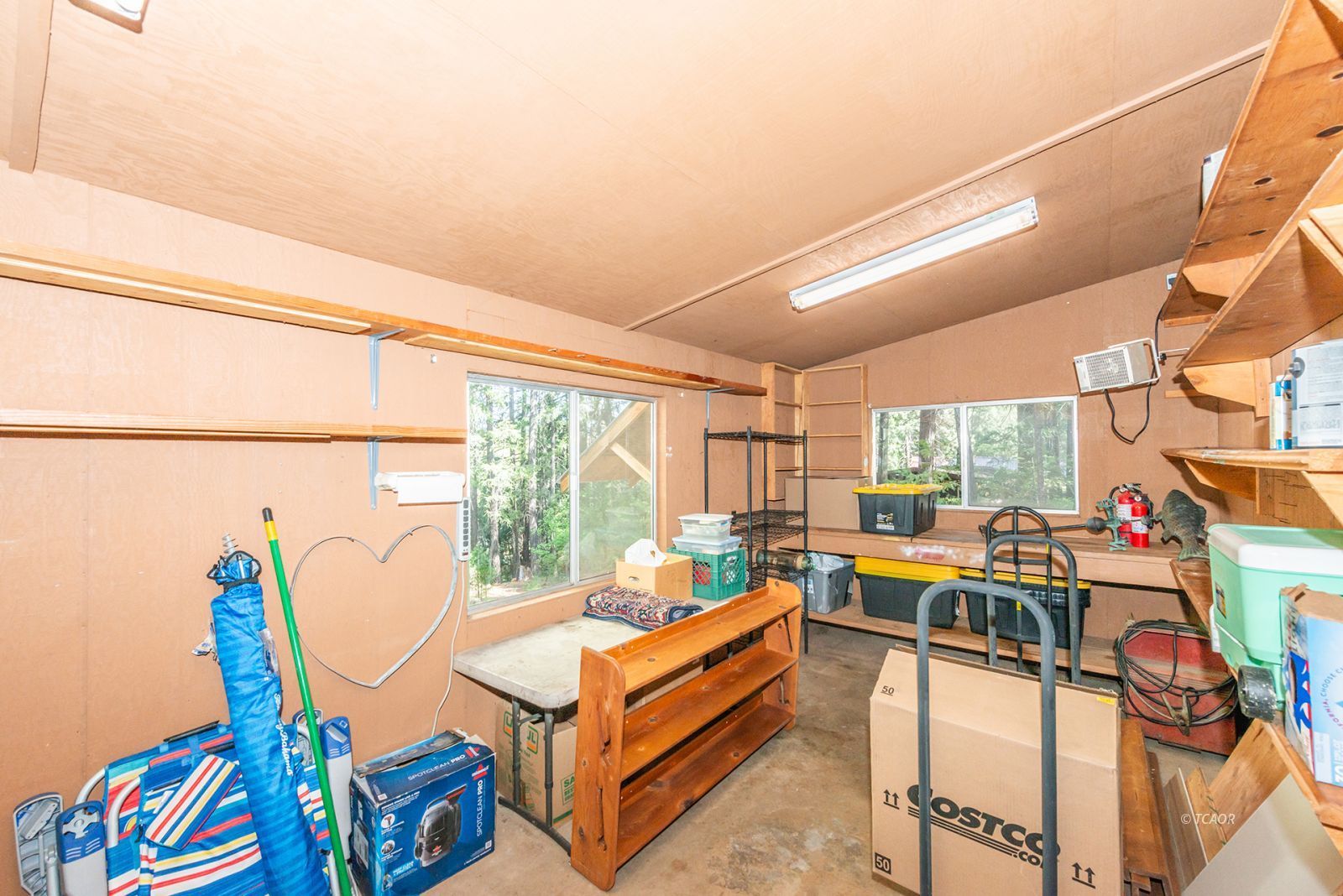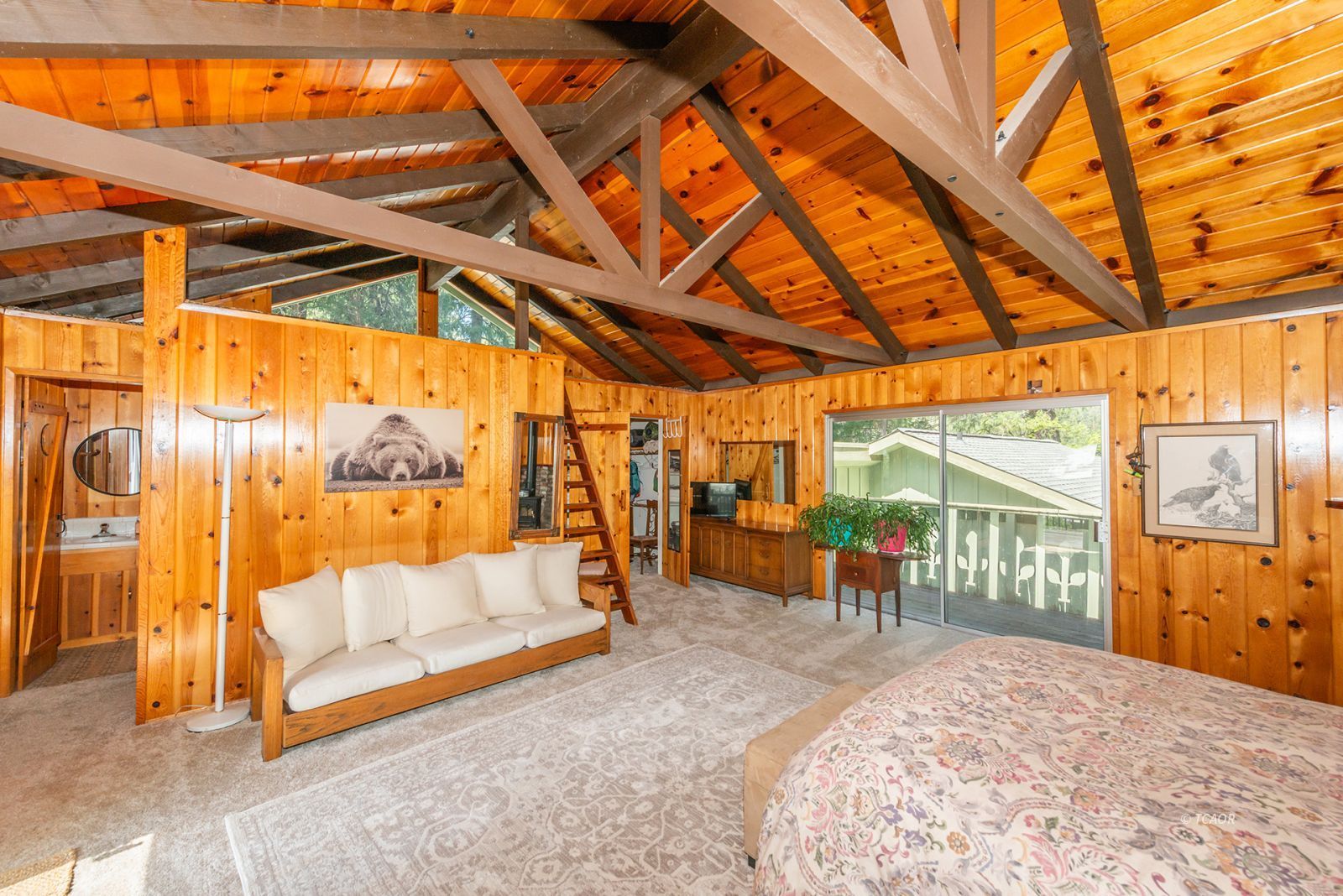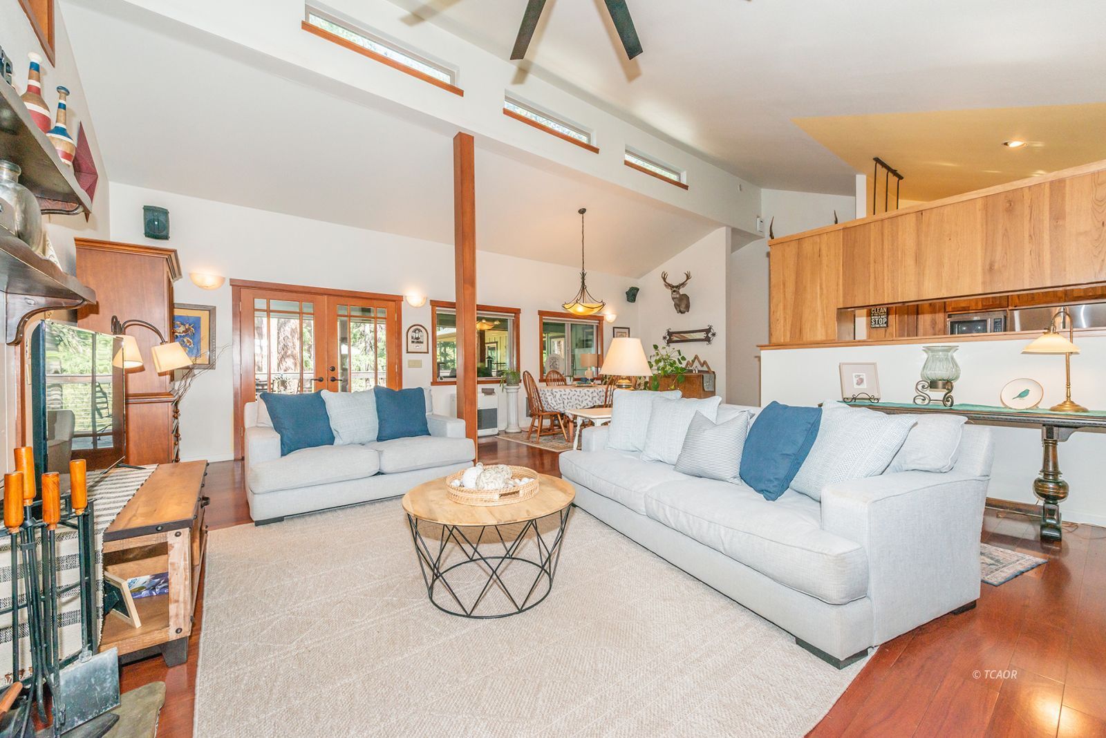 Beautifully restored in 2008, this home offering 2,174 sq ft with 2 spacious primary ensuite bedrooms and 2.5 baths. Blending historic character with modern updates, the home features Douglas fir hardwood doors, trim, and window casings, tile entry, and engineered hardwood flooring in the main living areas.Kitchen includes granite countertops, Hickory cabinetry, and walk-in pantry. Dining room flows to living area both with French doors leading to covered back deck, plus a cozy sitting room with custom carpet and floor-to-ceiling blue pine shelving.Main-level primary suite offers walls of windows, French doors to a private deck, and spa-style bath with radiant heated tile floors, soaking tub, granite counters, and walk-in tile shower. Upstairs features a large second primary suite with balcony access, front deck, and loft. Additional amenities include half bath on main level, attached 2-car garage with workshop, lower workshop, expansive back decking with mountain and creek views, and whole-house generator (2022), all on .51 acres. Close to Trinity Lake and Trinity Alps Wilderness-ideal for year-round living or a mountain retreat.